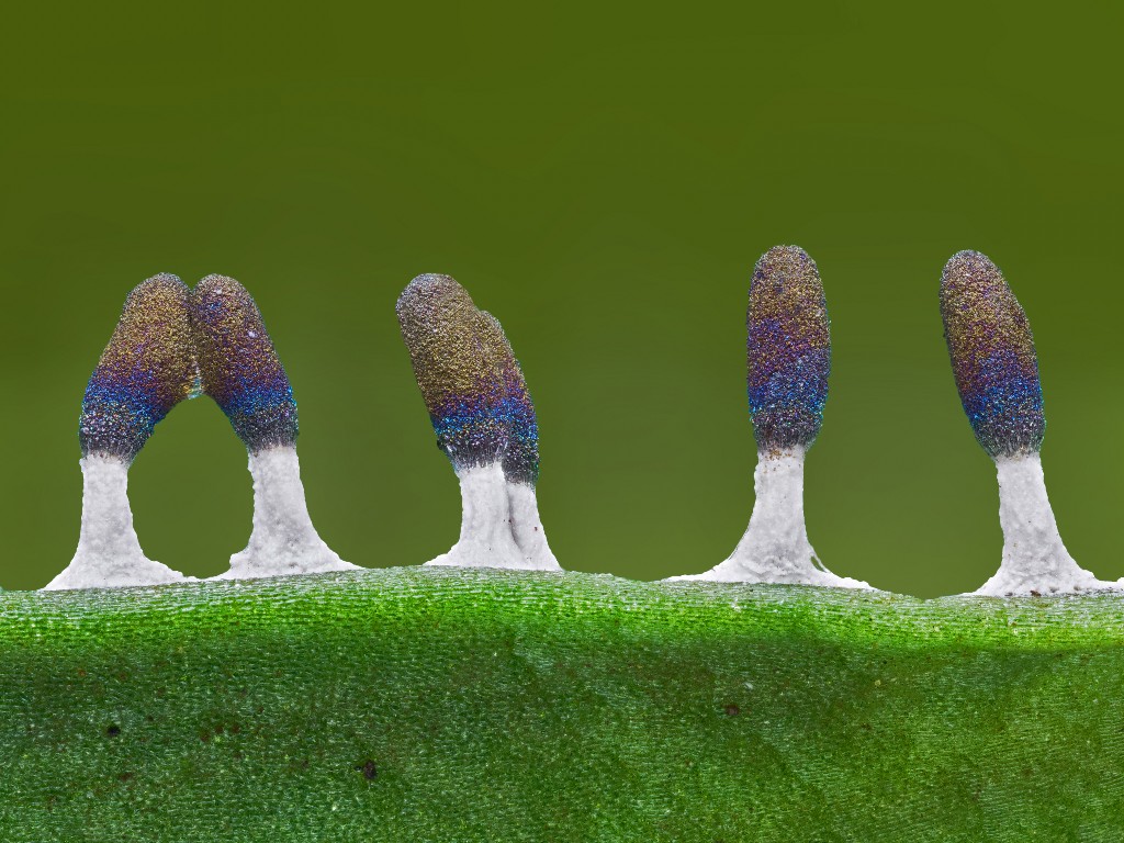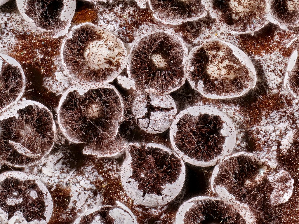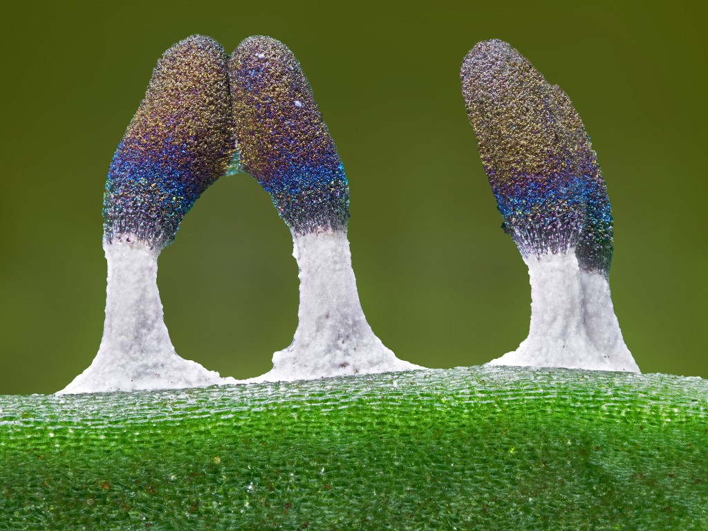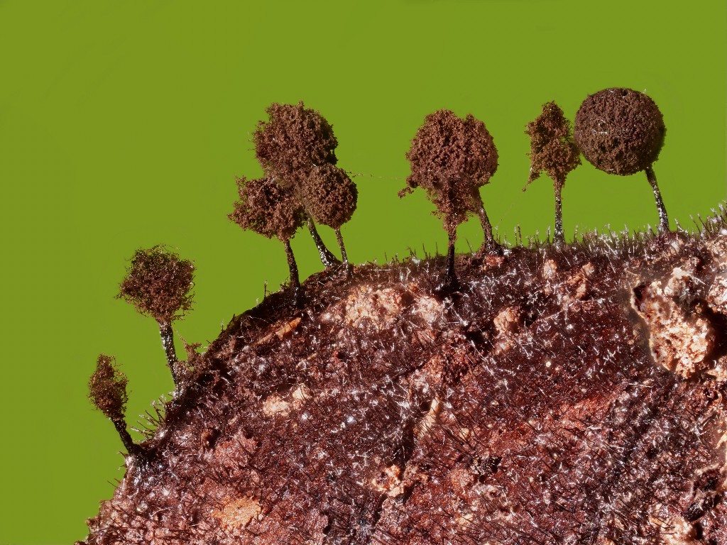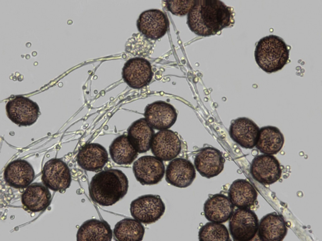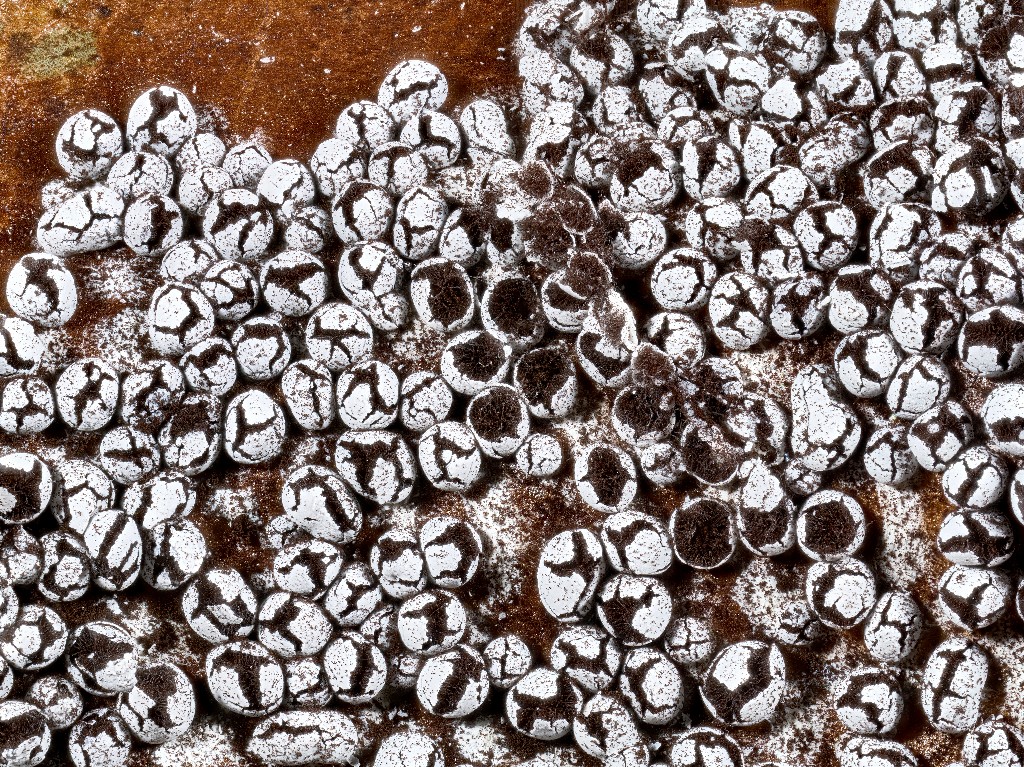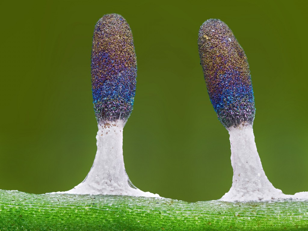 3 Fruchtkörper 3-4 mm im Durchmesser, kurzstielig, Asci 140,4 x 13,6, IKI+, Haken-, Sporen im Mittel 34,63 x 6,45 (Q=5,45) scutuloid, gekrümmt und mit 1 bis 3 Setulae am Ende. Einige Sporen im Ascus mit einer Septe. Die Bestimmung erfolgt nach Declercq (2004) und Baral & Bemmann Ascomycete.org, 5 (4) : 109-128. Oktobre 2013. Wir haben den Fund als