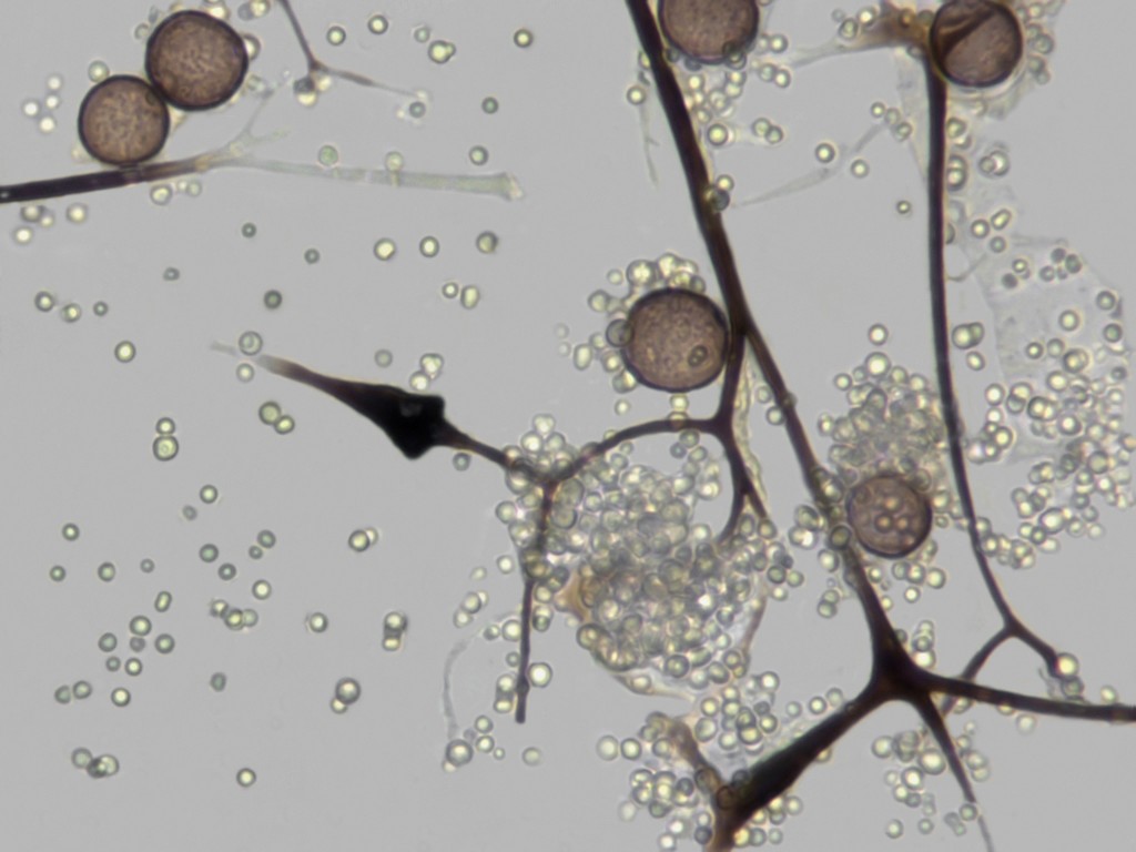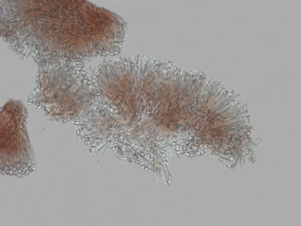 Hymenoscyphus lepismoides Baral & Bemmann, sp. nov bestimmt. Wir waren allerdings nicht ganz sicher weil die Sporen nicht auf beiden Enden Setae hatten. Zur Sicherheit haben wir den Fund bei AscoFrance eingestellt, wo ihn Zotto bestätigt hat. Für Deutschland gab es bisher erst 2 Funde, Fuckel 1870 und v.Tavel 1889. Darüberhinaus wurden für Europa 3 Funde aus Belgien und 1 Fund aus Schweden gemeldet.
