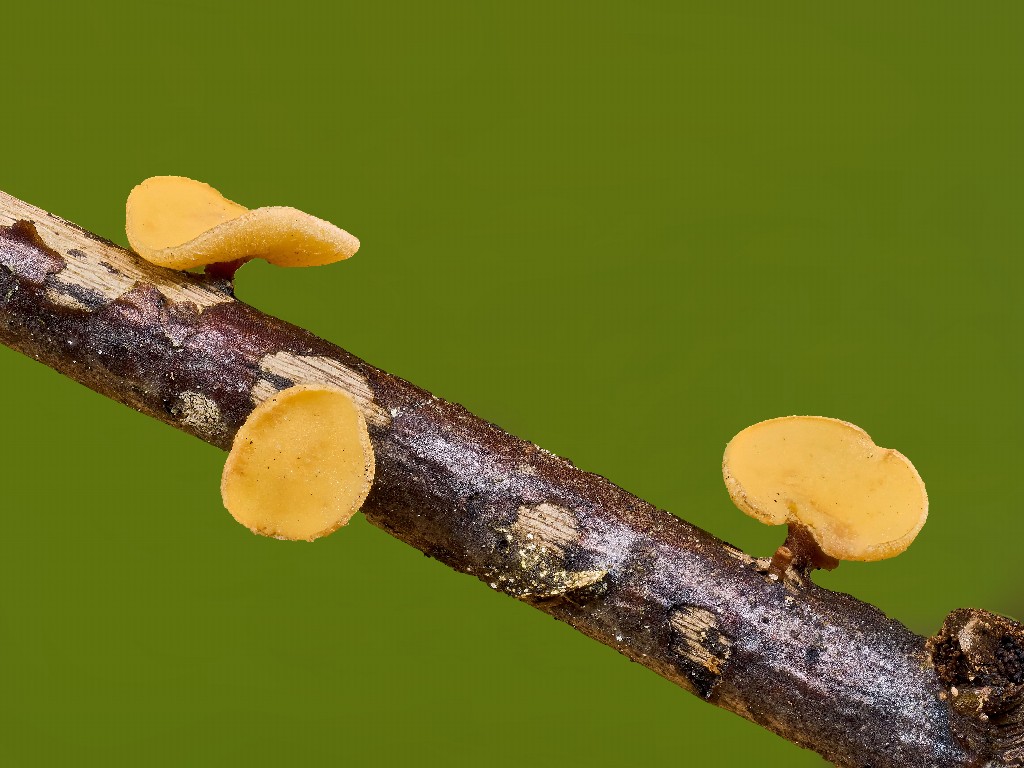 wir haben am 04.12.2024 in einem Laubmischwald auf einem Ast von Carpinus betulus einen Hymenoscyphus gefunden.