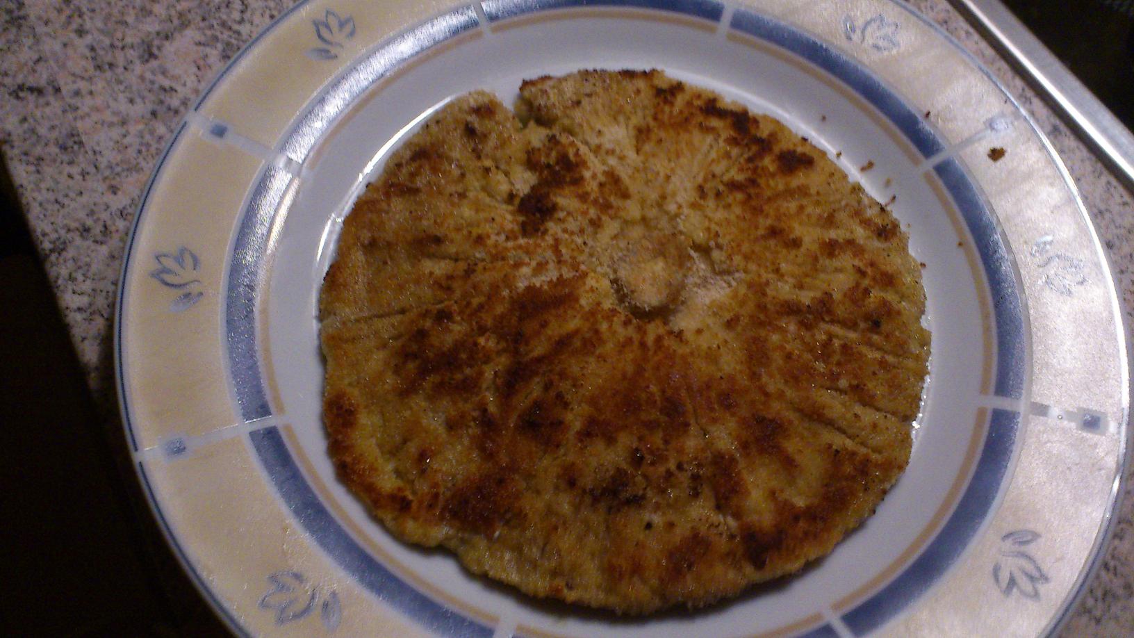 Daheim hab ich dann aus den Mischpilzen mit Zwiebeln, Schinken und Sahne mein Ragout gekocht. Gab 3 gute Portionen, davon warten 2 jetzt im Tiefkühler. Den Parasol gab es paniert als Nachtisch. :plate: