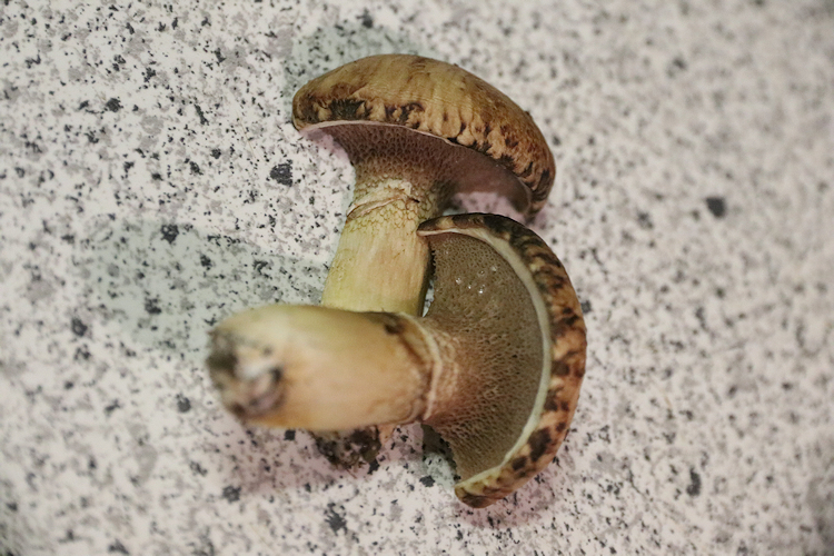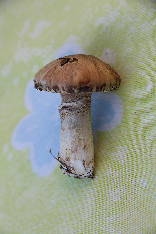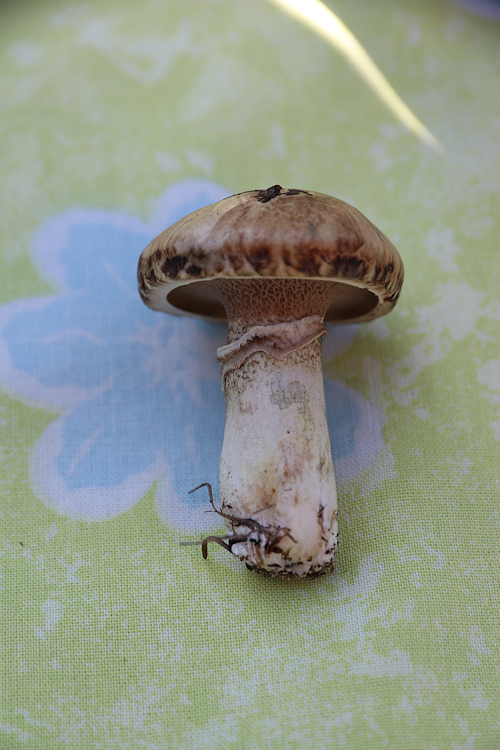 Ich hab die Pilze in der Wiese am liebsten wachsend und nicht im Kochtopf, deswegen hab ich dem nur halb unter den Hut schauen können.
