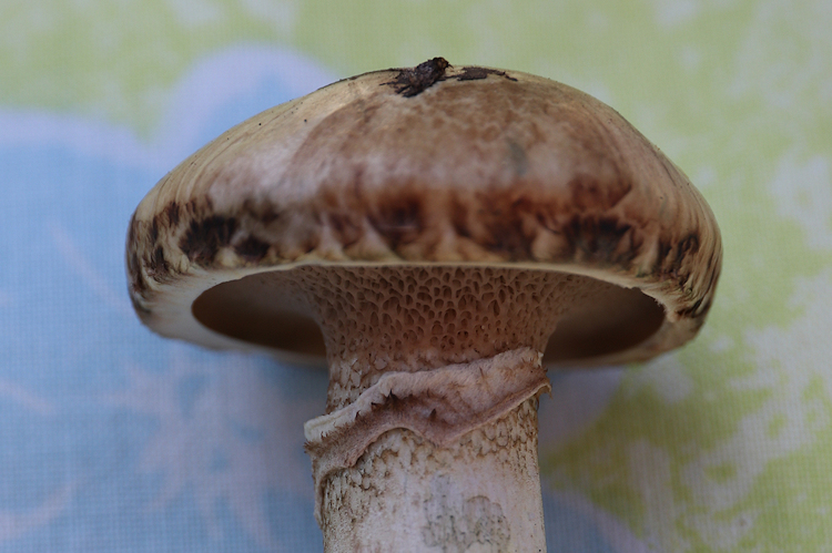Den Gift-Riesenschirmling schliesse ich aus, denn der verfärbt sich auch. Ich denke, es geht Richtung Parasol, auch wenn keine Natterung am Stiel zu erkennen ist. Vielleicht weiss jemand anderes mehr darüber?