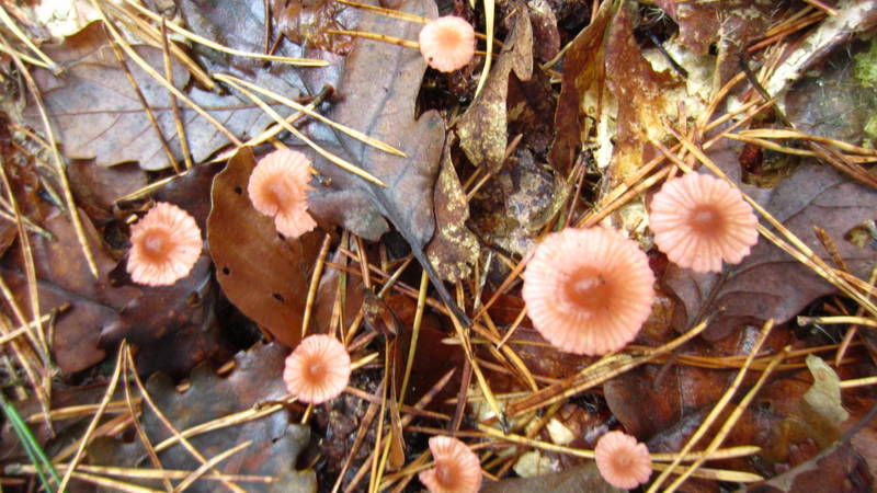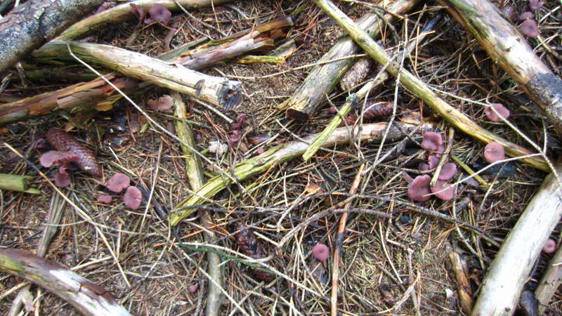 Der Waldboden war großflächig bedeckt von kleinen rosanen Pilzchen.