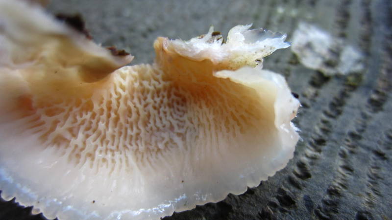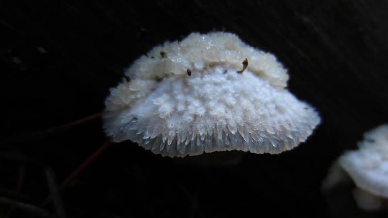 Ein noch unbestimmter Baumpilz, der gallerartig ist und wie ein Eiskristall aussieht. Es wuchs auf einem Kiefernstumpf. -> Edit: Es müsste hier Gallertfleischiger Fältling (Phlebia tremellosa) sein, danke Anna für den Vorschlag!