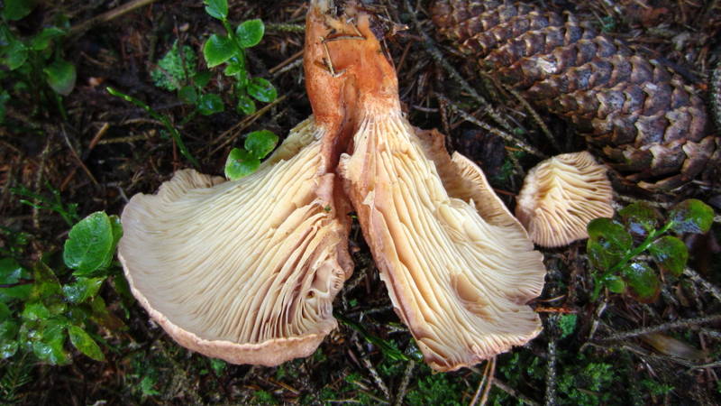 Zwischen den jungen Fichten fand ich diese dunkel-orangene Milchlinge, die bis jetzt auch noch nicht bestimmt worden sind: