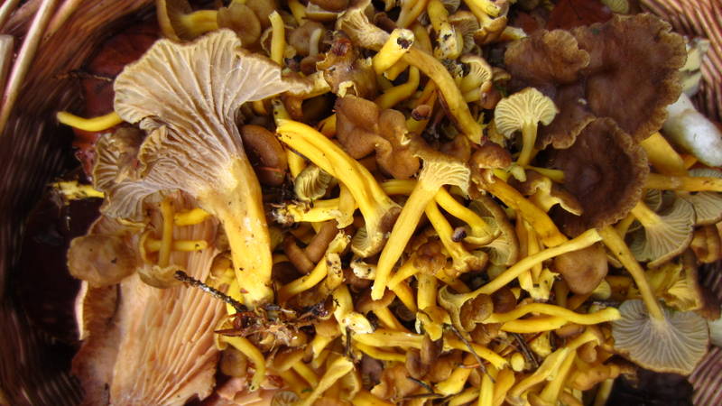 Genau an dieser Stelle fand ich erneut die heiß gesuchten Trompetenpfifferlinge (Craterellus tubaeformis)!