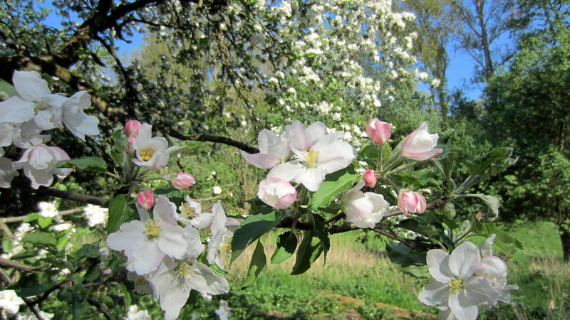 Zwischendurch in den Lichtungen wuchsen diverse Obstbäume (v.a. Apfelbäume, die wunderschön geblüht haben):