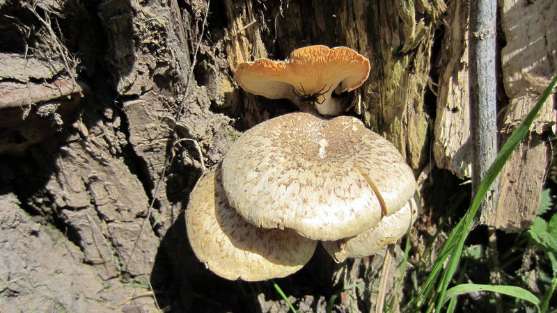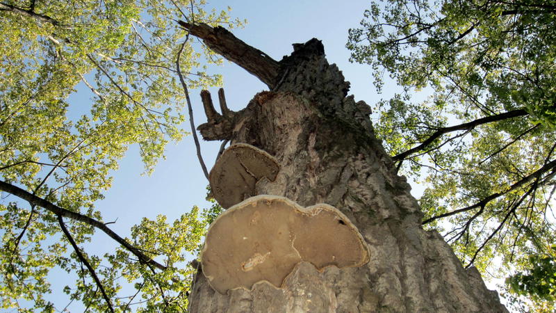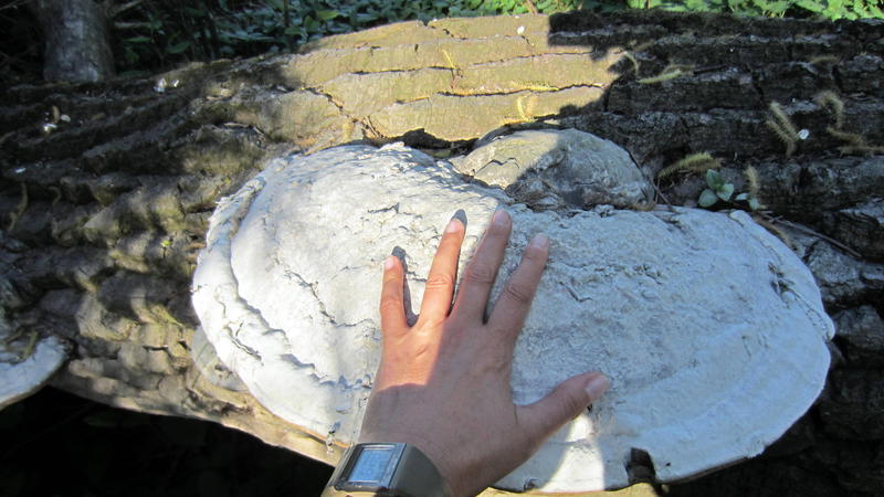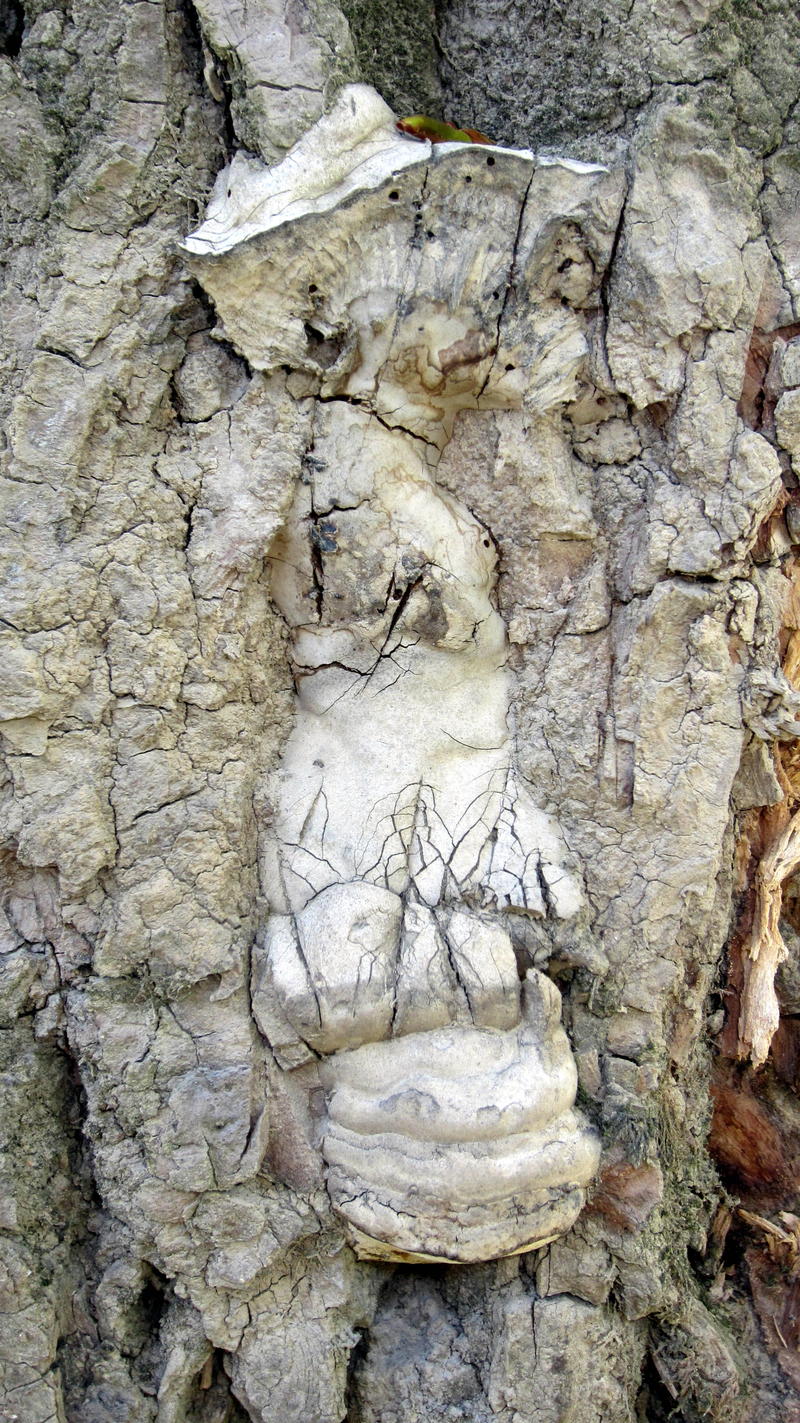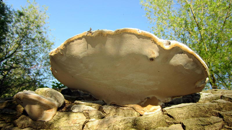Die Pilzkörper waren recht groß und haben mich sehr an Flachen Porling erinnert (die Farbe passte nur nicht dazu). Sind das doch riesige Zunderschwämme, wie bereits vorher auf der Pappel?
