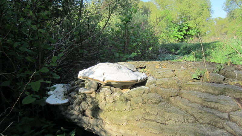 Direkt am Anfang meiner Erkundungstour in der Siegaue fand ich erneut helle Porlinge auf einer abgebrochenen Pappel (zumindest glaube ich, dass das eine war):
