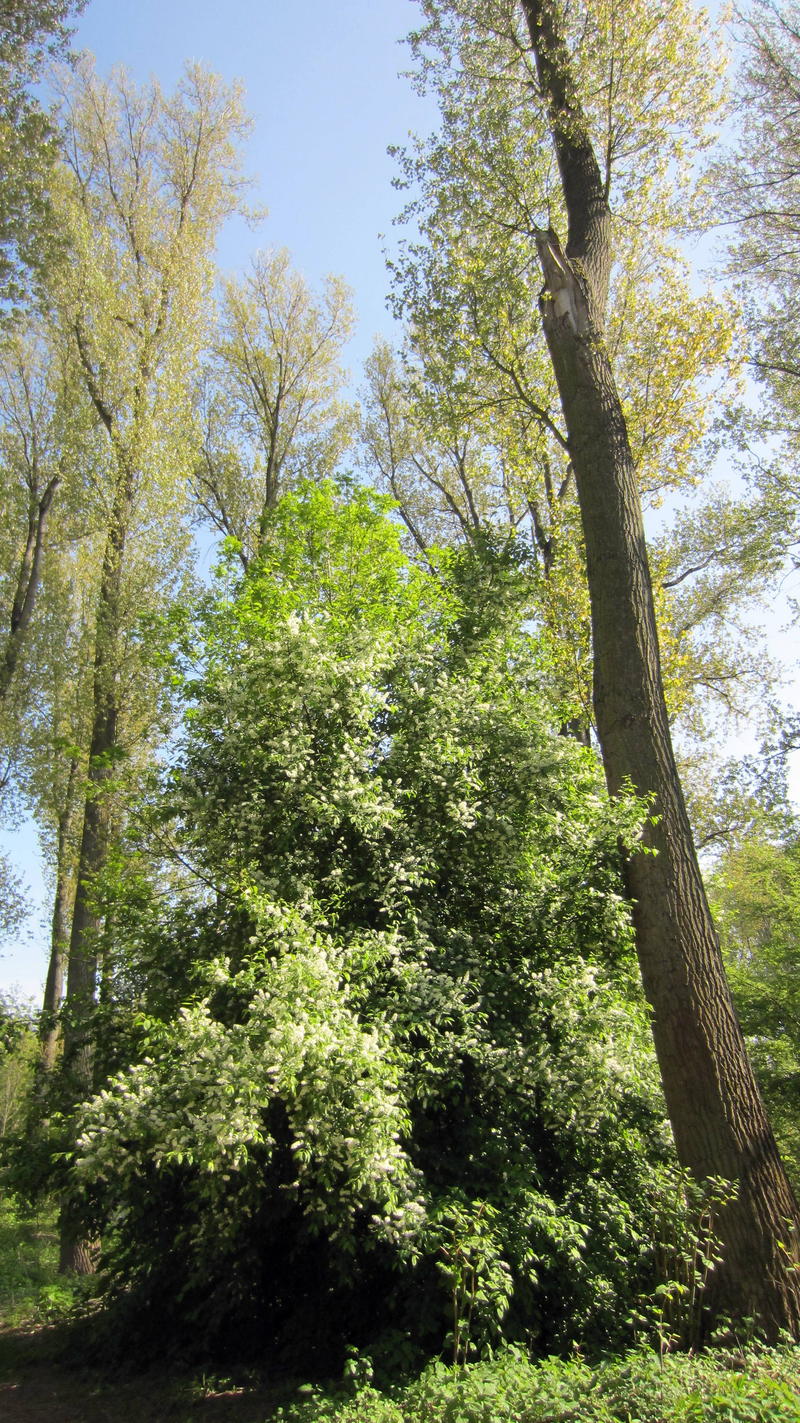 Zwischen höheren Bäumen kam immer wieder toll duftende Gewöhnliche Traubenkirsche