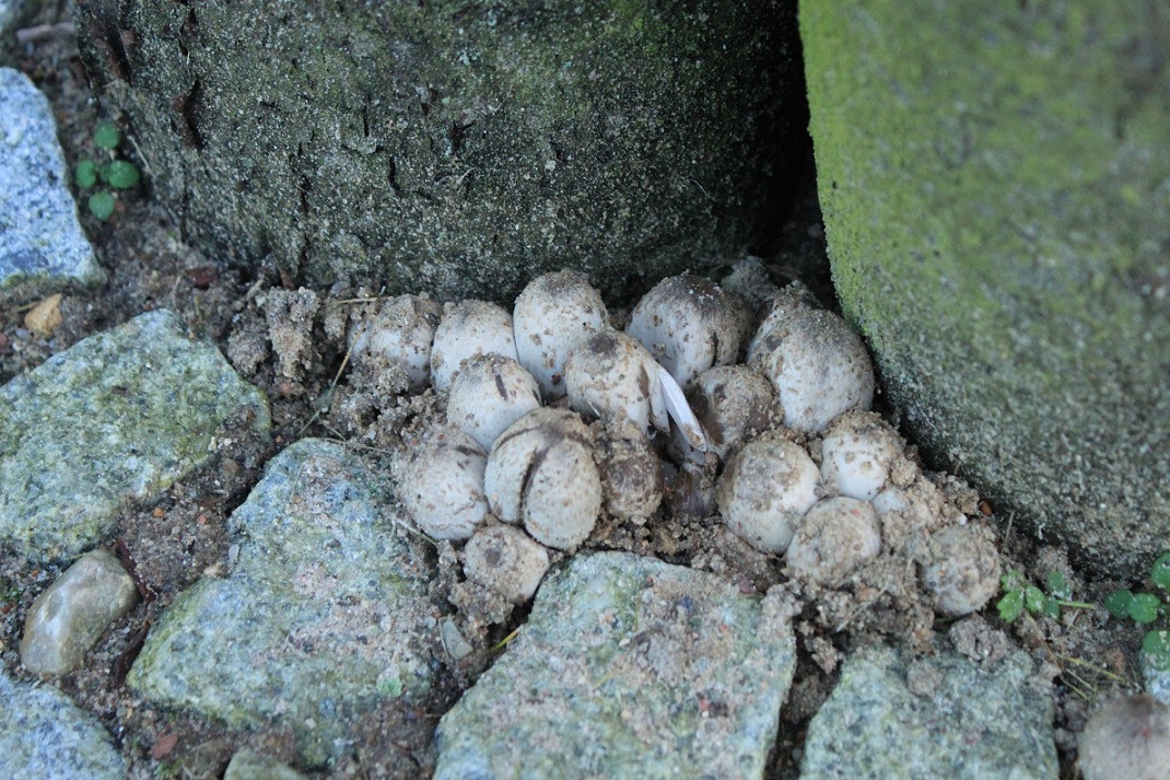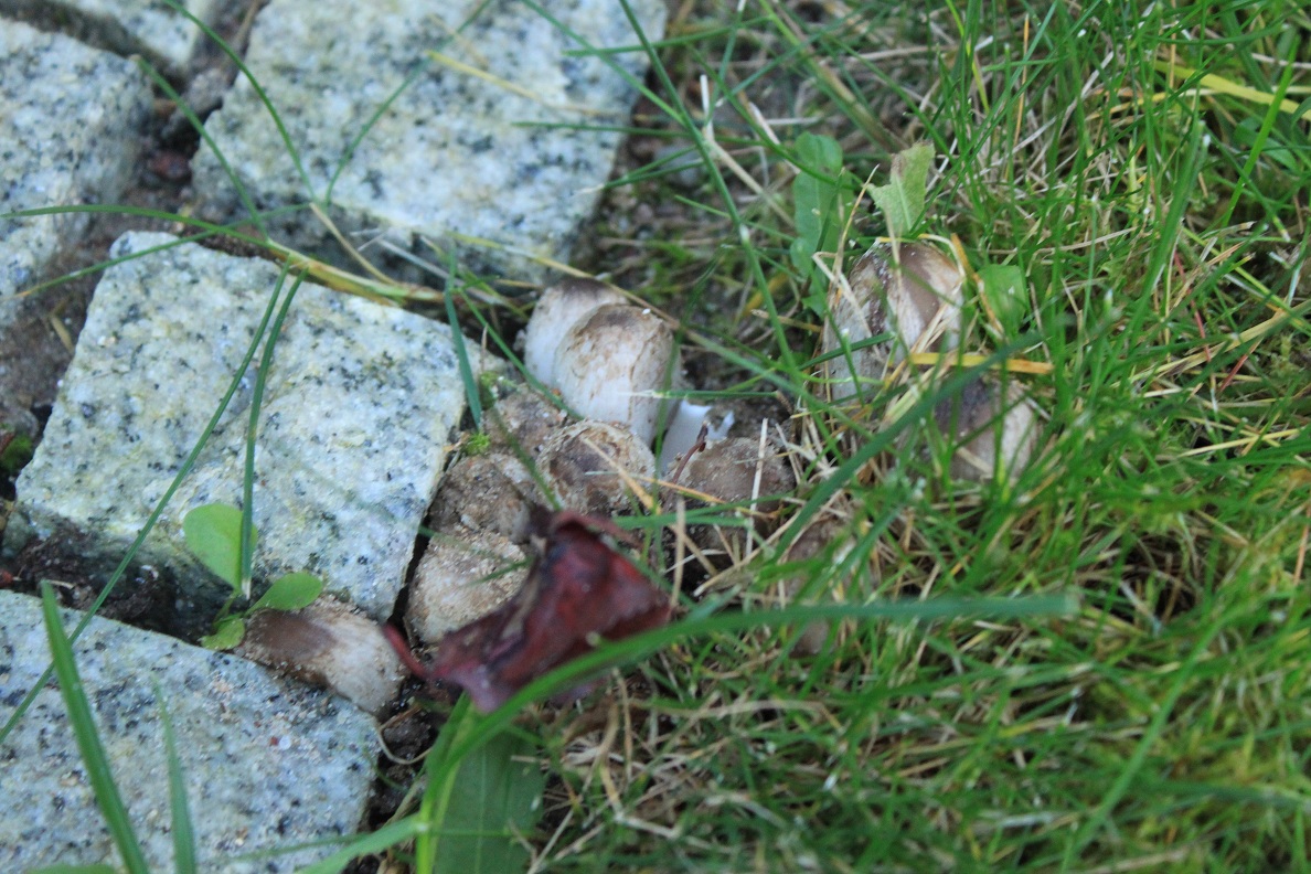 Wäre sicher interessant, ein paar von den Pilzen mal auswachsen zu lassen. Erst wenn sie's zerlaufen anfangen, sollte man sie um des hübschen neuen Pflasters willen verräumen