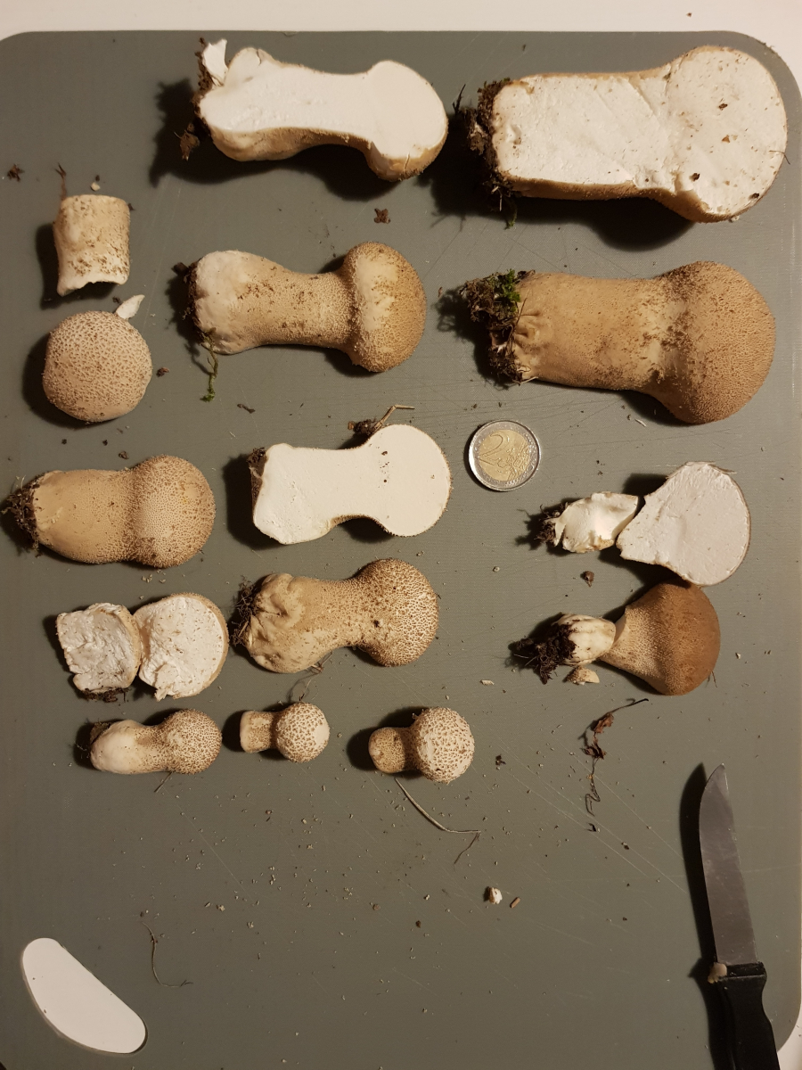 4. Zum ersten mal gefunden: Birnen Stäublinge. Im selben Nadelwaldgebiet direkt am Rande einer kleinen Straße.