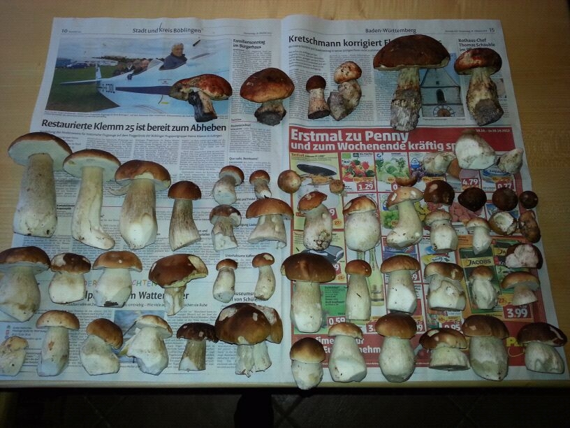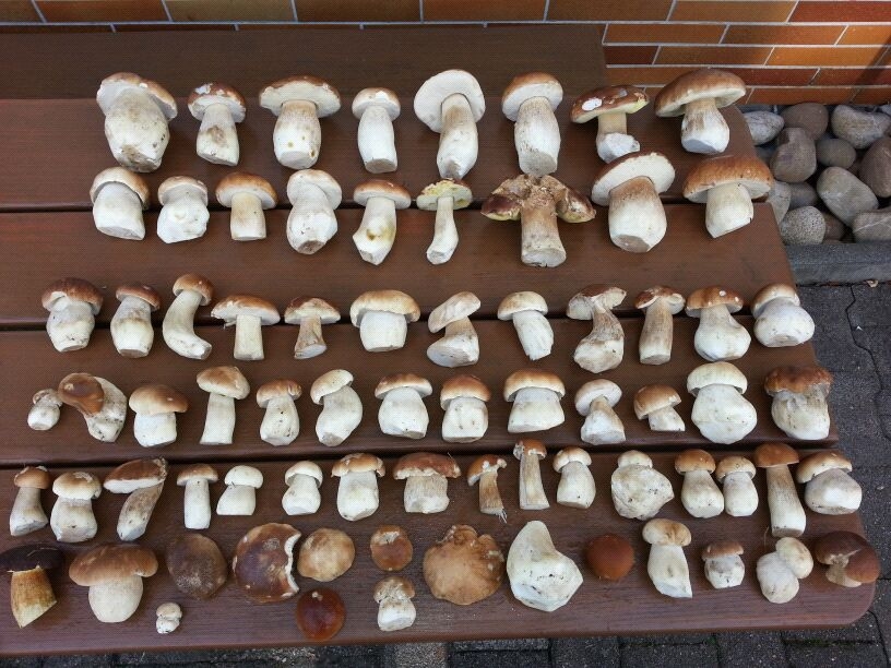Die ersten 7 sind Rotkappen, alle anderen sind Fichtensteinpilze (Herrenpilze).