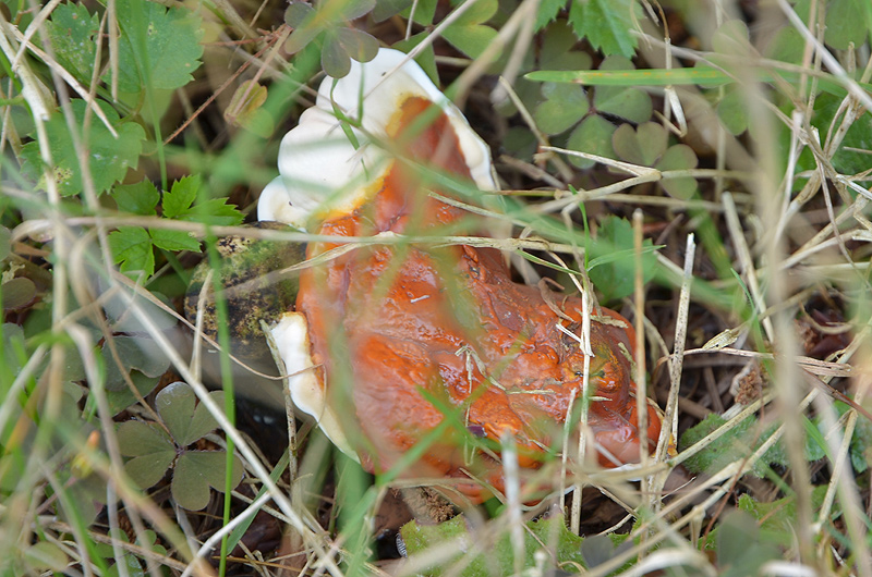 Zuerst dachte ich, dass es ein Bovist ist, aber nach der Entnahme kamen Lamellen zum Vorschein, sowie ein noch sehr kleiner Fruchtkörper.