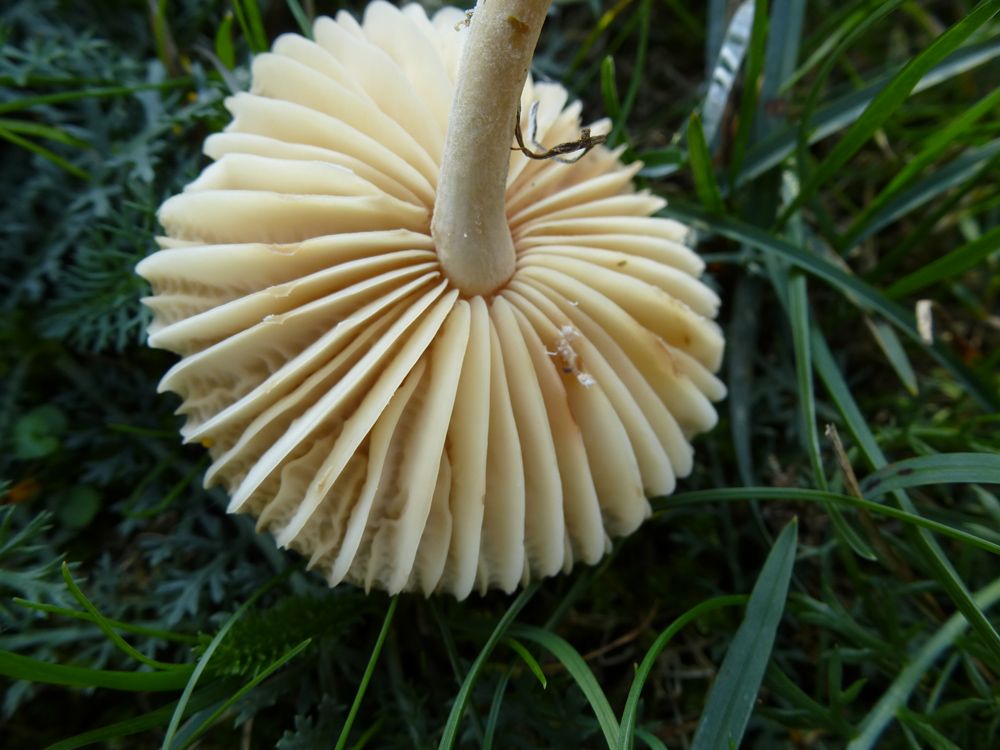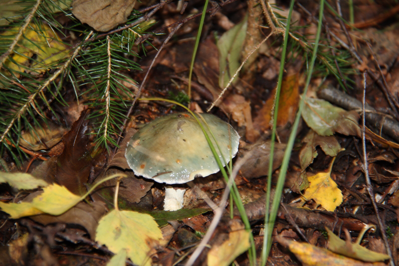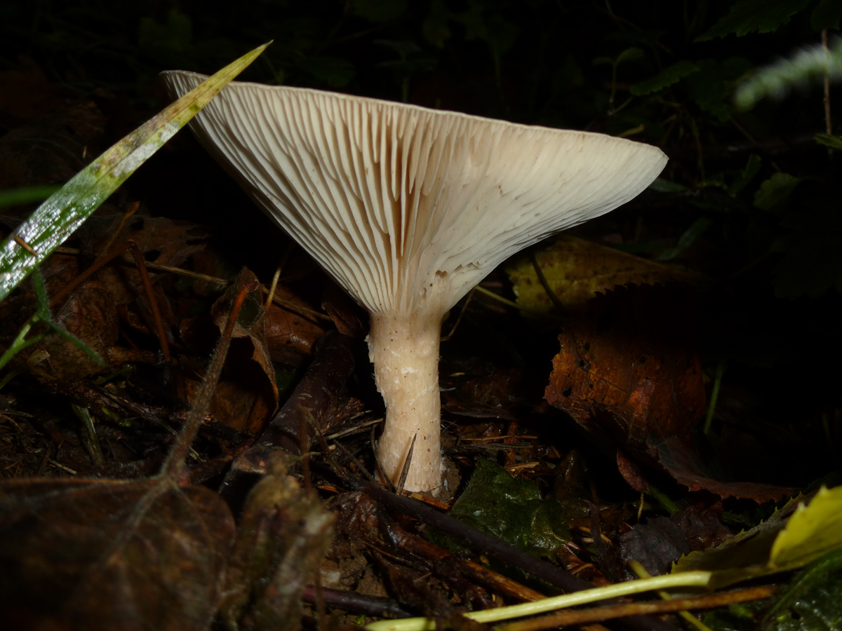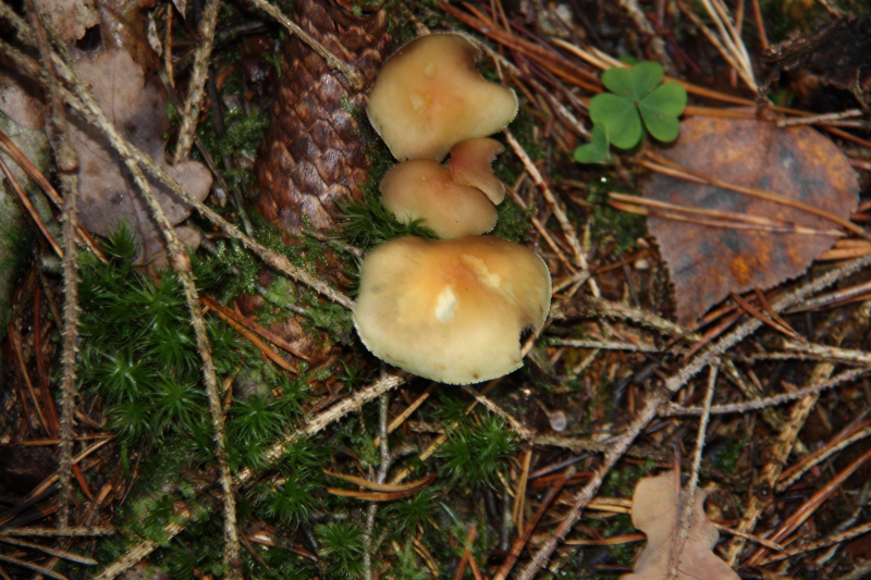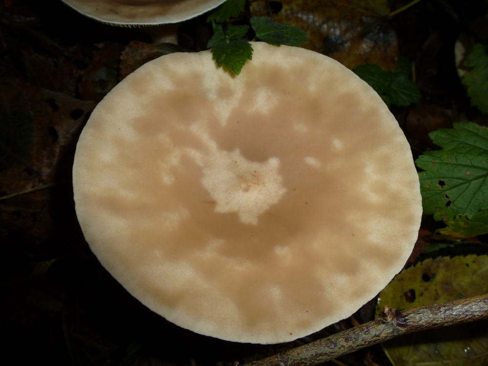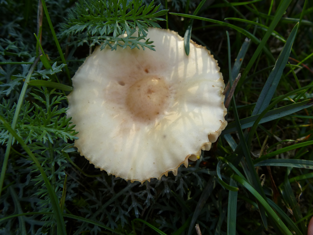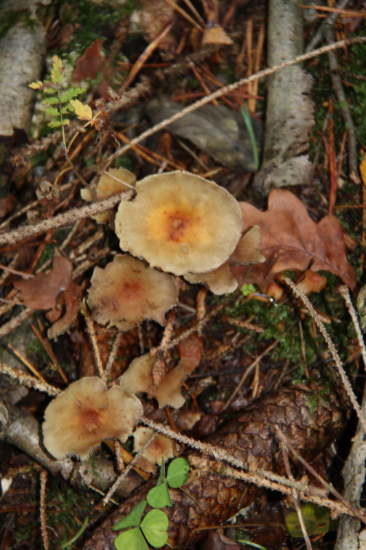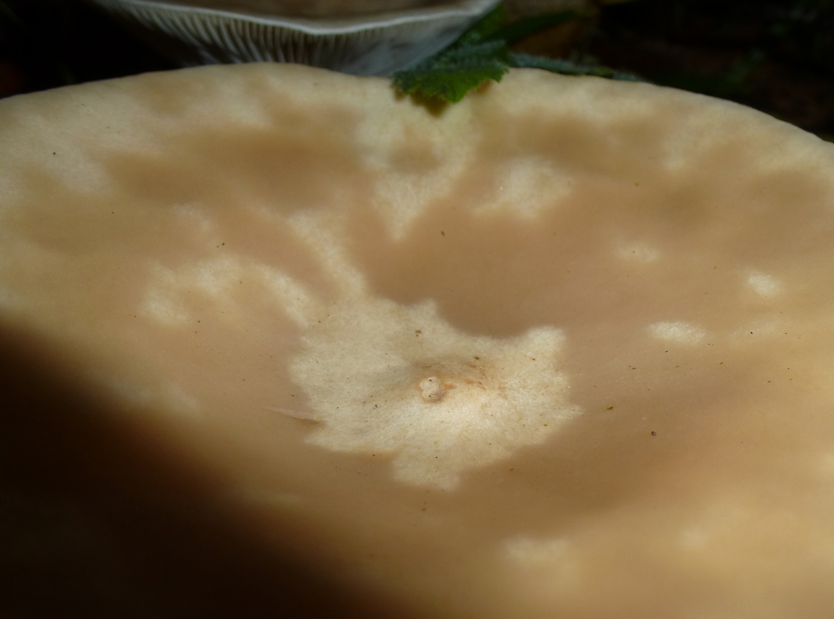 Der (vermeintliche) Körnchenröhrling war auch ca. 5 cm im Durchschnitt, es gab aber auch deutlich größere, dann auch abgeflachte, Exemplare. Die Röhren war hellgelb, die Huthaut etwas überstehend. Der Hut war etwas klebrig. Der Stiel war fast weiß mit einigen dunklen Punkten. Der Pilz hat nicht gebläut, weder auf Druck noch beim Aufschneiden. Wuchsort war in diesem Fall ein eher kalkiger Boden und Nadelbäumen (leider habe ich nicht aufgepasst, es müssten aber Kiefern gewesen sein).