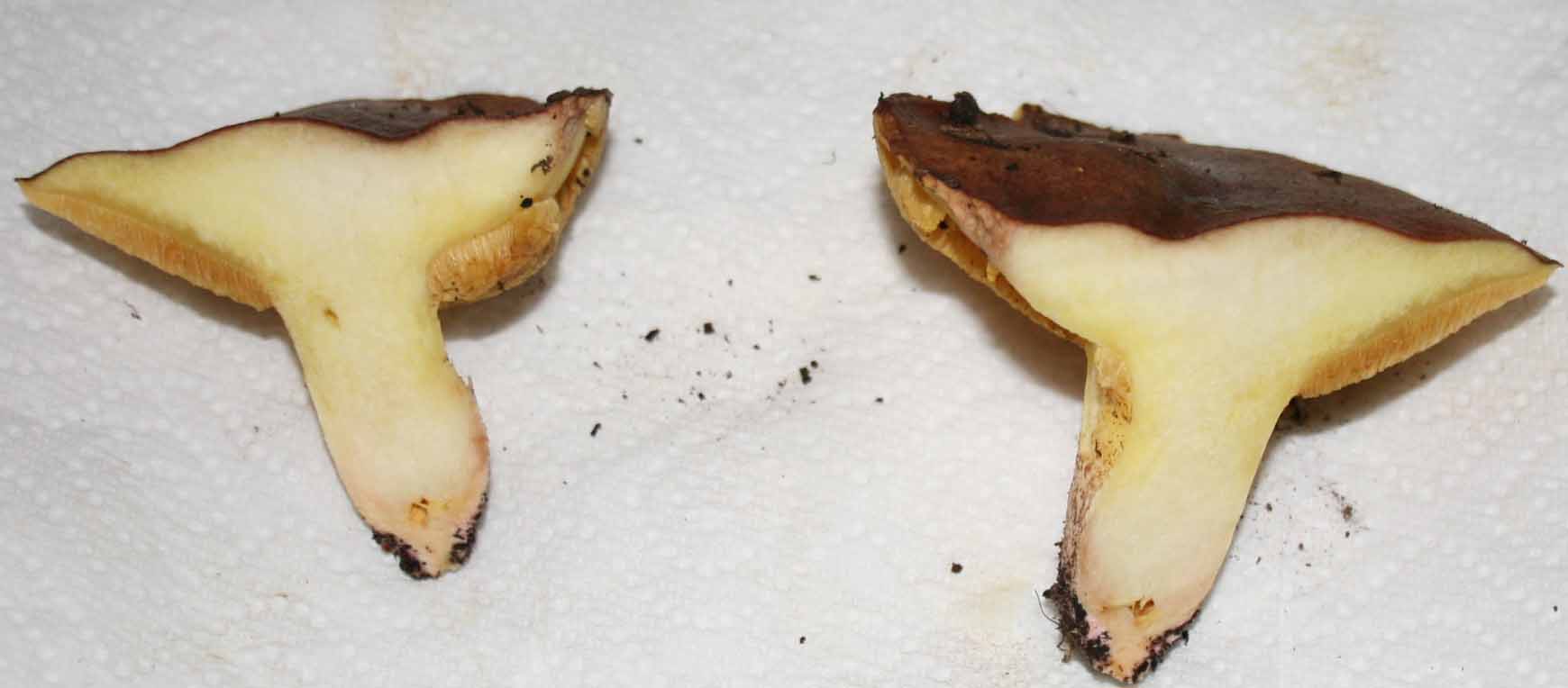 - Verfärbung des Fruchtkörpers im Schnitt- JA- Gelb!!!