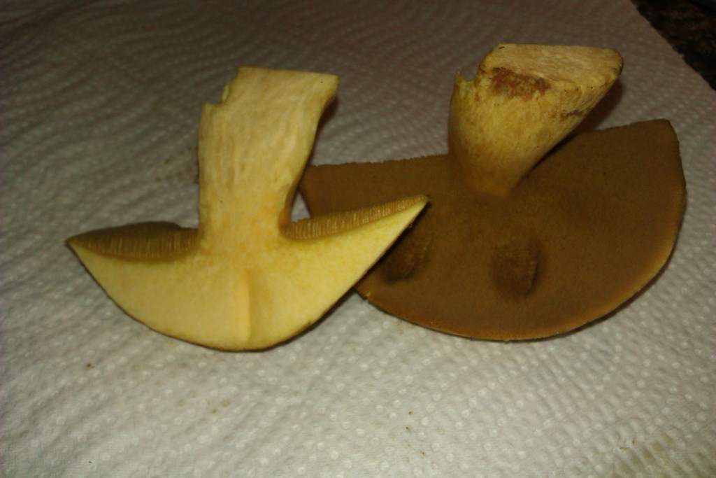 Querschnitt hab ich auch keinen gemacht, da ich erst in meinen Büchern vom safranfärbigen Fleisch erfahren habe.