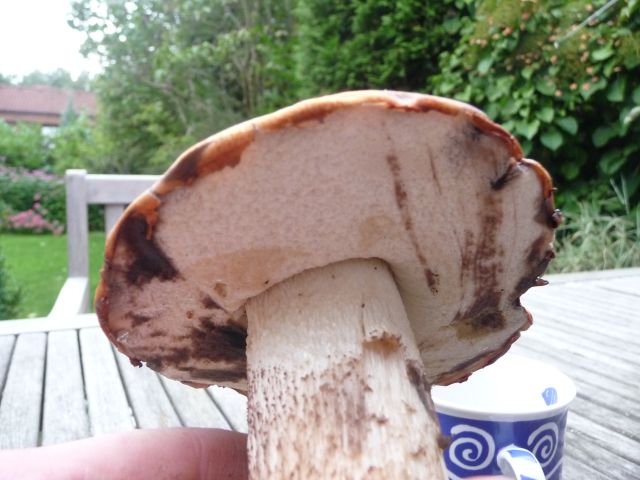 Moin Beorn, nach dem Schnitt habe ich etwa 5 Minuten gewartet. Ich habe nur das eine Exemplar zerlegt, da ich nicht mehr als 2 Stück dem Wald entnehmen wollte. Ich möchte eigentlich nicht zig Pilze aus dem Boden drehen um diese bestimmen zu lassen. Deine Tipps passen aber, danke.