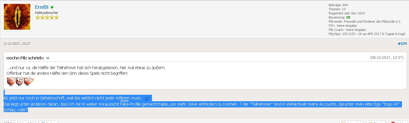 Don Brosgno darf sich 7 Chips gutschreiben und Stefan GN 86 kriegt 5 Pilzchips.