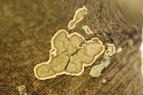 Pilz 1, der "Fleck" war ca. 3-4cm, groß, wuchs an Weiß-nich-was-weil-Baumführer-nicht-dabei.