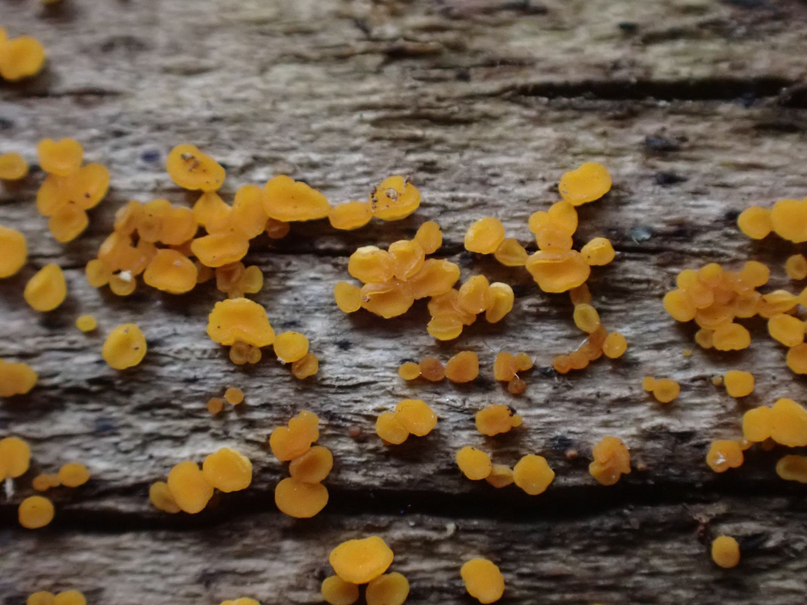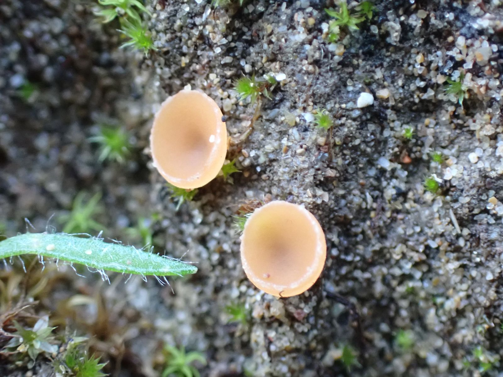 07, 08, 09: kleine orange Becher, ohne Stiel, auf Sand im Moos. Keine Ahnung, ob das die gleichen waren, 07 & 08 nah beieinander, 09 an anderer Stelle.