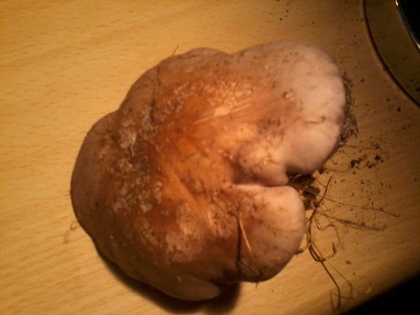 -Der Pilz schmeckt...nun ja... nach Pilz.Der Hut des Pilzes ist mittig braun gefärbt, wobei das Braun zum Rande hin leicht auseinanderläuft. Der Rand ist beige gefärbt, die Farbe Violett schimmert leicht hindurch.