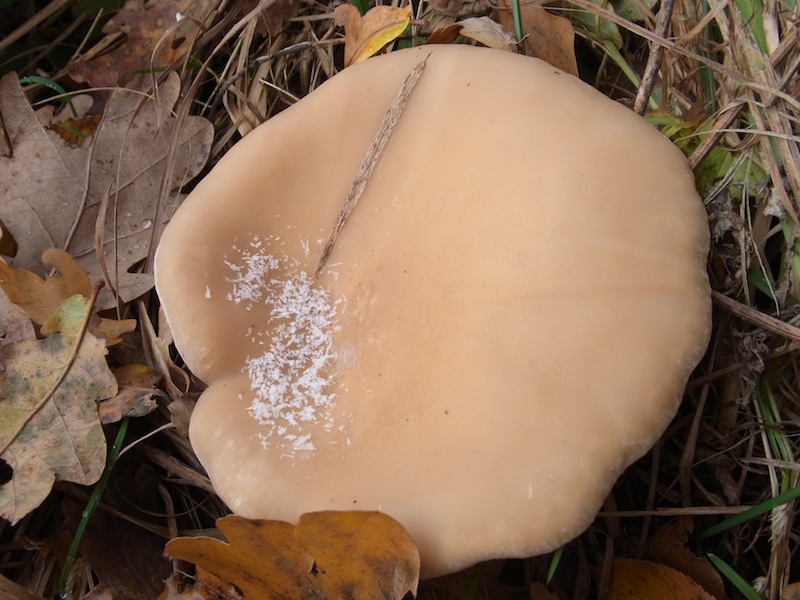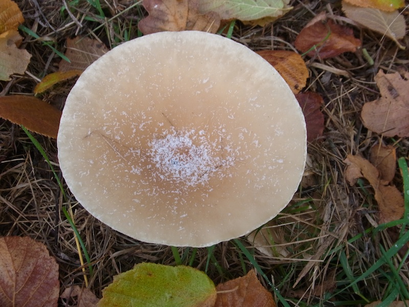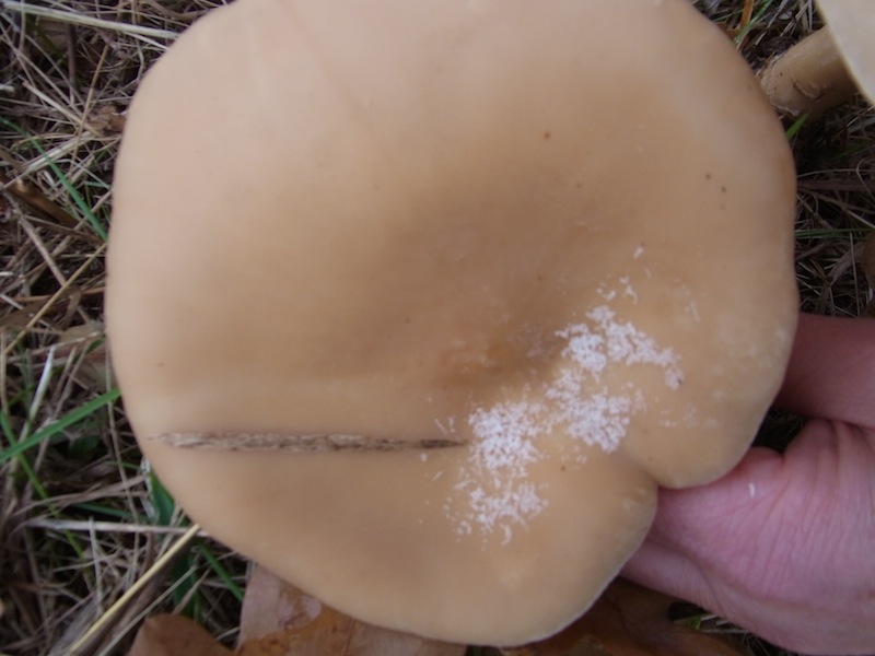 Ich war noch mal bei den Pilzen, also es gibt noch größere Exemplare bis 15 cm Hutdurchmesser und Stiel bis 12 cm lang. Der Hutrand ist bei manchen nicht bei anderen teilweise eingerollt uuunnd es findet sich in der Mitte der typische Knubbel! Das "Weiße" um den Knubbel sind erste Schneekristalle bei Temperaturen um Null grad. Also ist dann der Mönchskopf sicher?