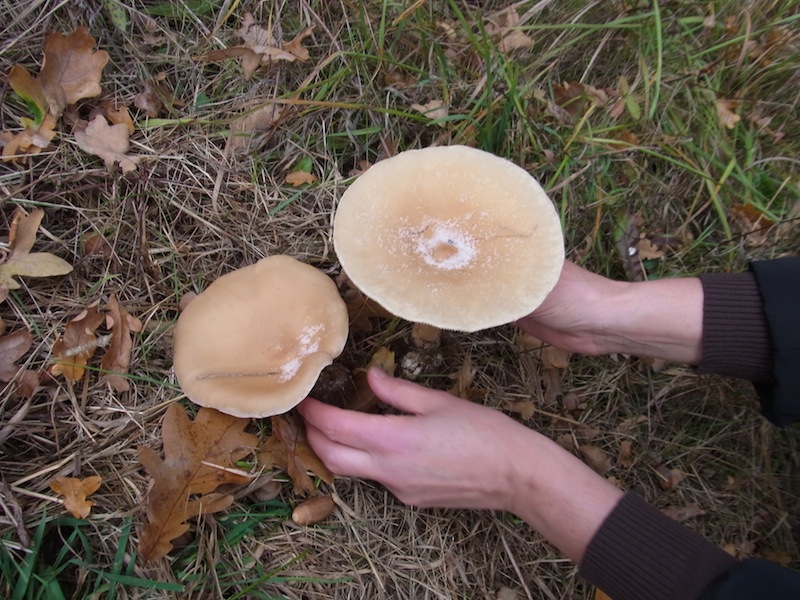 Es passt auch, dass der Stiel recht zäh ist und der größere Pilz von beiden keine eingerollte Krempe mehr hatte - siehe http://de.wikipedia.org/wiki/Mönchskopf. Es hat mir viel Spaß gemacht, die vielen hilfreichen und auch heiteren Beiträge zu lesen.