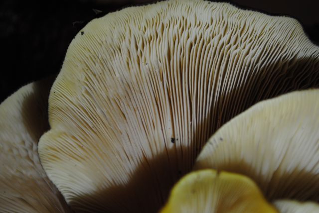 4.massenweiße an Baumstümpfen,von quitschgelb über ganz hellbraun,bei vielen der Hut inne Mitte hellbraun nach aussenhin Quitschgelb,stiel auch gelb,Stiel hohl,Lamellen leicht helloliv,Hut trocken