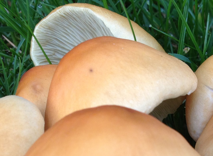 Einen Baumstumpf gab es nicht. Dort, wo die Pilze wachsen, werden vermutlich noch Wurzeln im Boden sein.