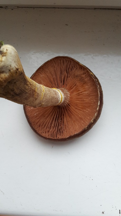 - Beschreibung Stiel: der Stiel hat eine auffällige gelbe Ringzone, welche gut auf den Fotos zu sehen ist; er fühlt sich luftig an und bricht schwach faserig