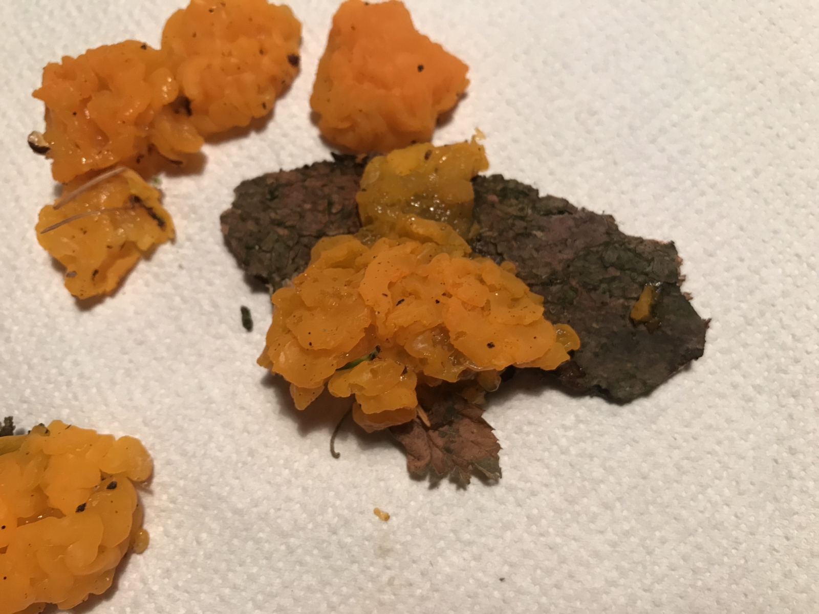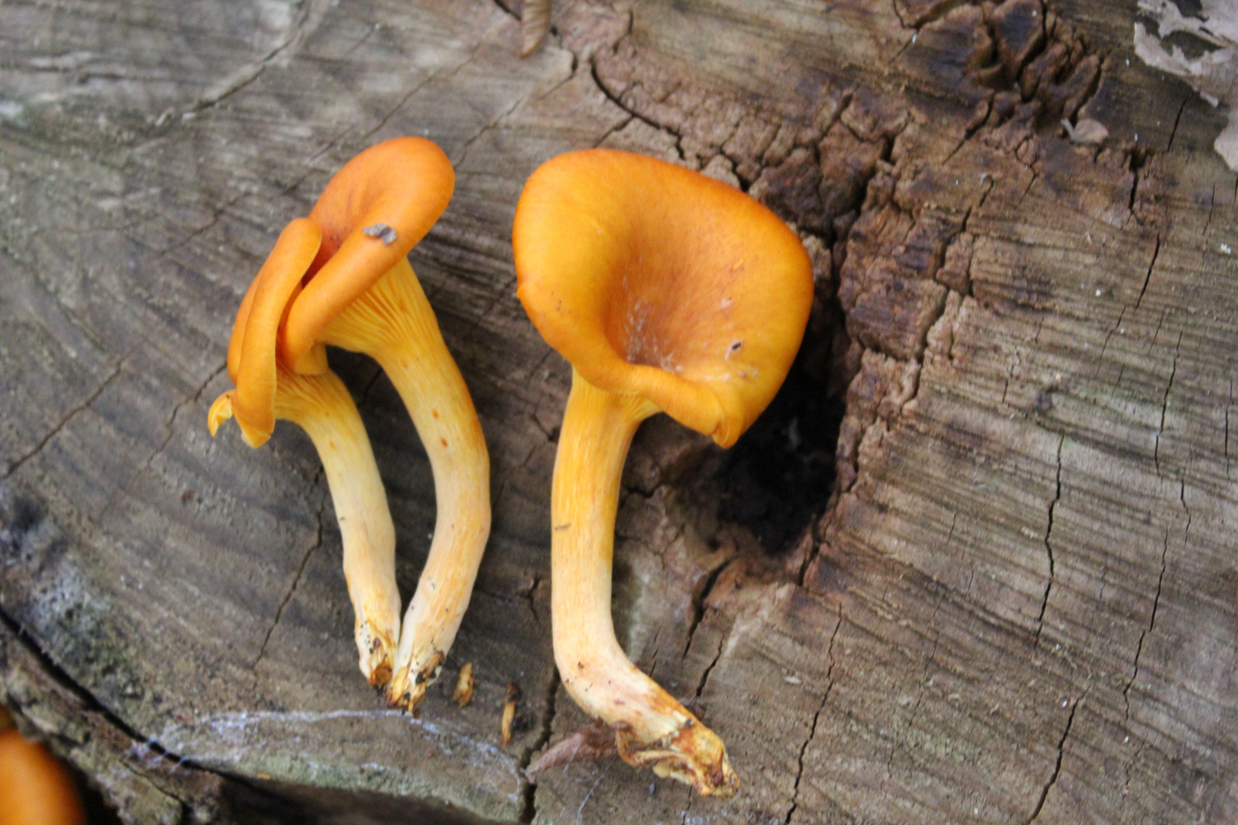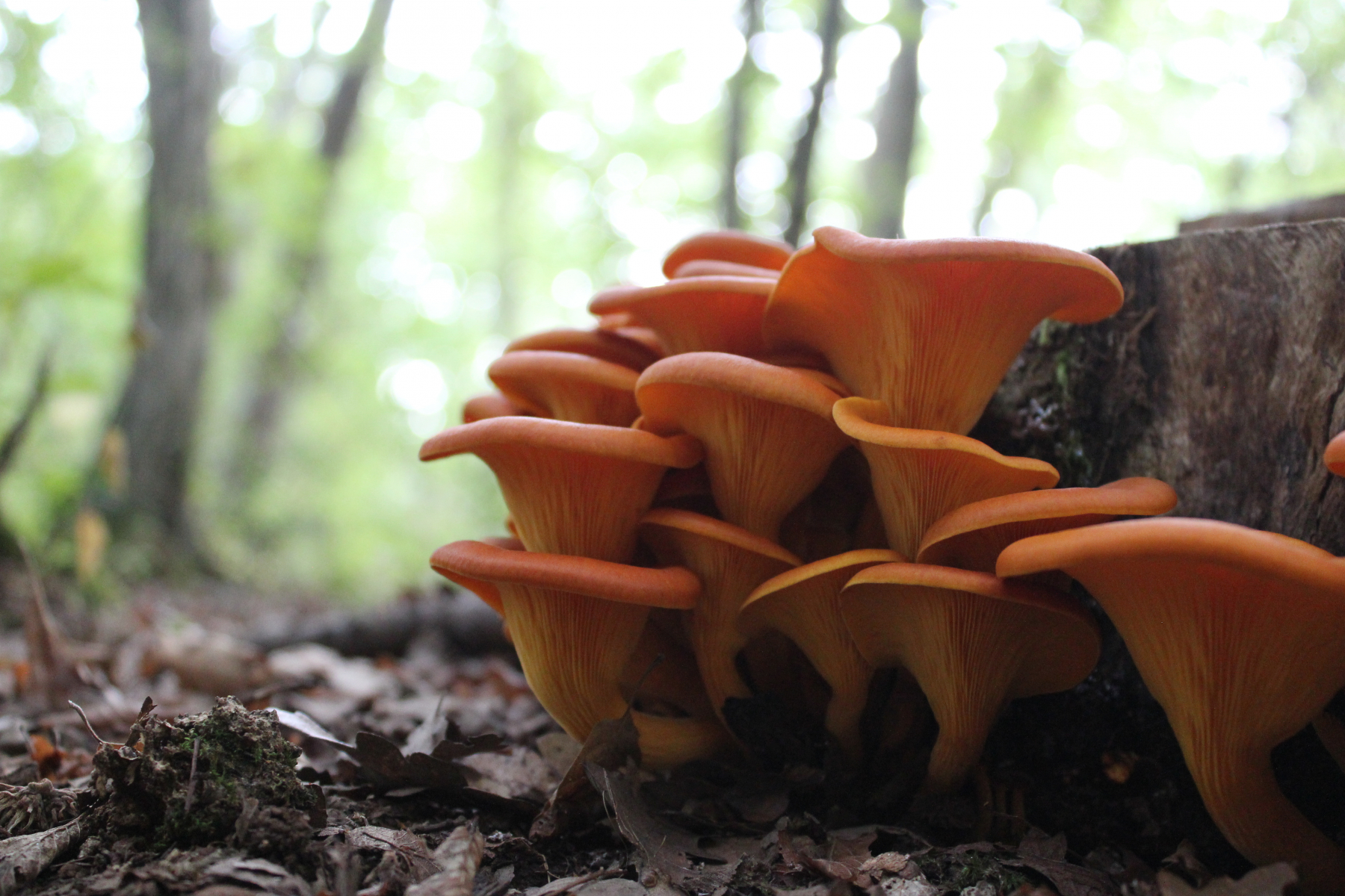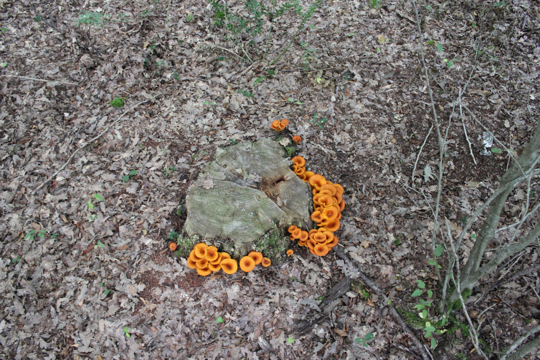 ich habe heute einen kleinen Ausflug in einen Eichenwald in Istrien gemacht und dabei ein paar Pilze gefunden. Auf einem Baumstamm (dürfte eine Eiche gewesen sein) habe ich die orangen Pilze gefunden. Um was für einen Pilz könnte es sich dabei handeln?