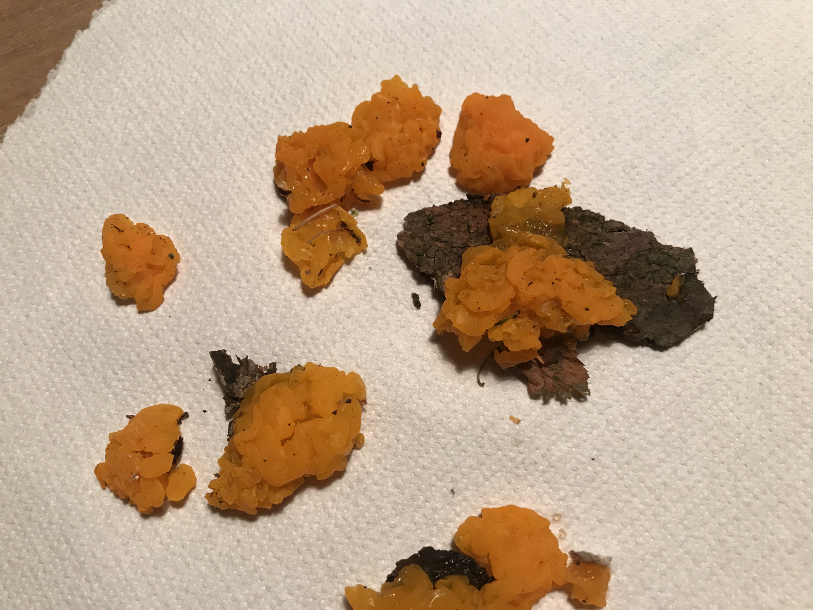 Habe heute beim spazieren gehen auf einem abgestorbenen Holunder einen gelben Pilz gefunden.