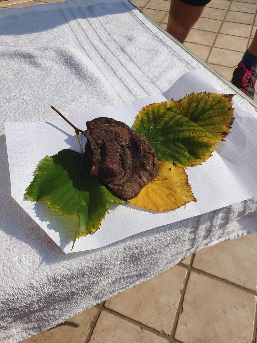 in Istrien im Eichenwald auf einem Baumstumpf einer Kastanie gefunden. Um welchen Pilz handelt es sich?