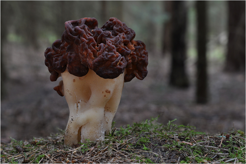 Ca. 30 Fruchtköper der Frühjahrslorchel standen da in lockerer Reihenfolge ......