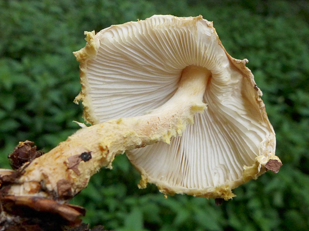 Grau und beige-braun kannte ich bisher, hier die wirkten vor Ort deutlich leuchtender gelblich, vor allem am Hutrand und am Ringrest - deshalb bin ich noch nicht so hundertprozentig überzeugt (weil ich auch sehr ähnliche Fotos im Netz, z.B. aus Italien fand).Ich ärgere mich über mich selbst, dass ich einen der größeren älteren Pilze dort nicht längs durchgeschnitten habe, um zu überprüfen, wie die Fleischfärbung exakt aussieht (Das Merkmal war mir noch nicht als wichtig bewusst).