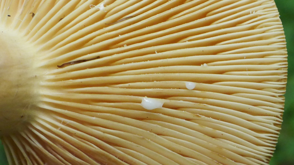 Die Milch war eindeutig weiß (bleibend weiß) und die Lamellen schön engstehend (hatte ich ja im letzten Jahr schon mal, den Grünmilchenden Milchling, L. glaucescens auch, der eindeutig grün milchte).