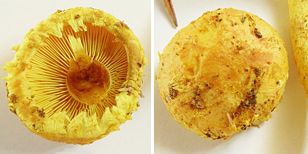 Lamellen hell, ABER schon in fast geschlossenem Zustand oft deutlich gelblich, dann rötlich-gelblich werdend.