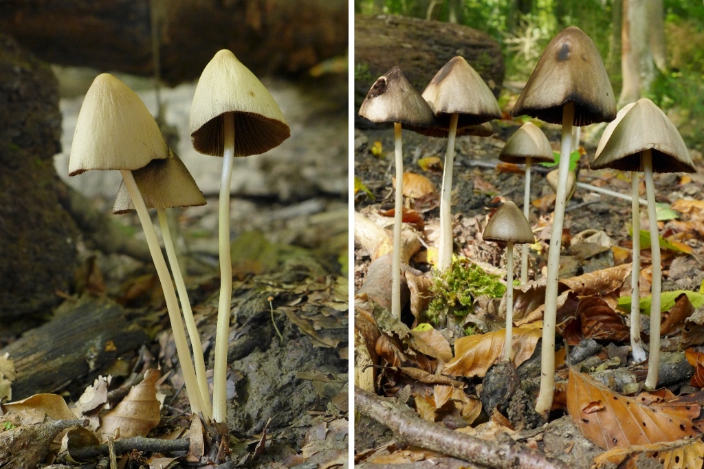 Nicht unbedingt eine Schönheit, eine Psathyrella mit sehr konischem Hut (feucht auch dunkler, bräunlich), Die Huthaut hat deutliche Haare, den hatte ich auch schon mal - und unter Psathyrella conopilus (Huthaar-Faserling) abgelegt --> jetzt: Parasola conopilus ... geht das so in Ordnung? Oder gibt es auch bei diesem Erscheinungsbild Verwechslungsgefahr? Die Lamellen sind gleichmäßig schwärzend, Standort im Kalkbuchenwald.