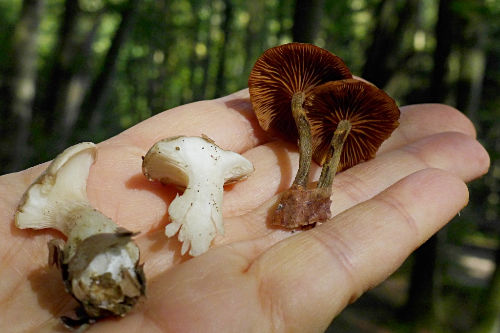 Der dritte Fund: Riesenpilzkörper (man vergleiche die Blätter), der dickste Stiel bis ca. 2 cm im Durchmesser, das Fleisch "knochenhart"