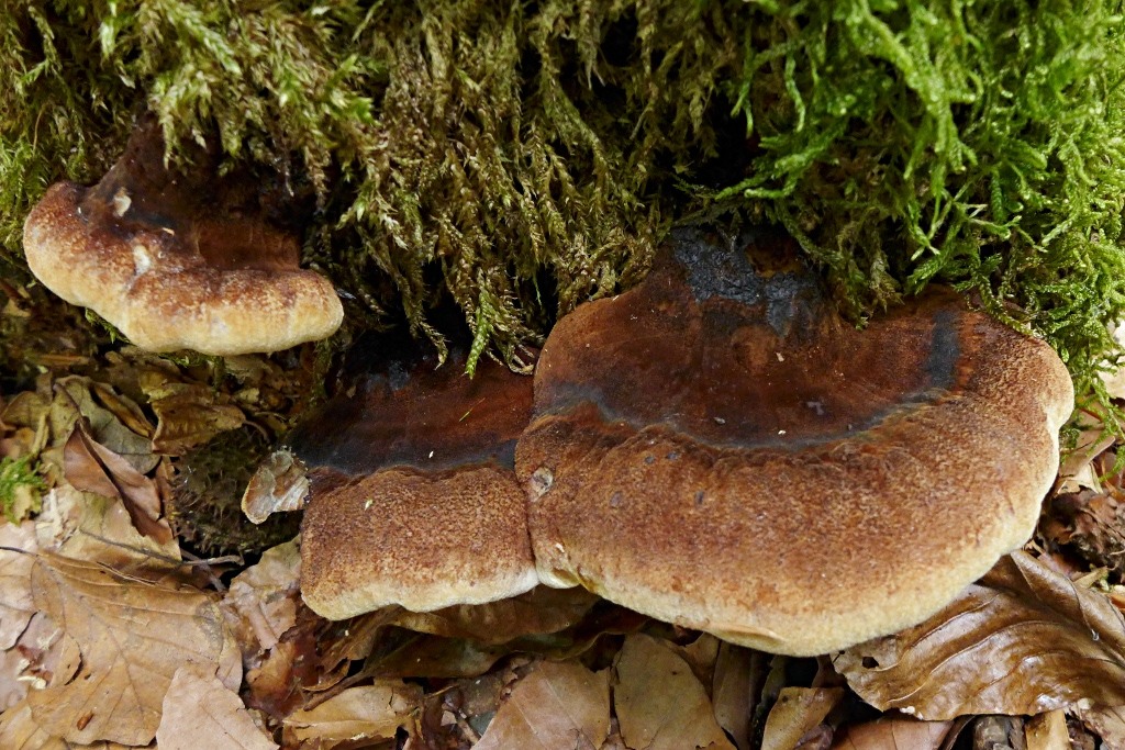 Ein Wiederfund, bzw. Erstfund in diesem gut beurteilbaren Stadium, an gelagertem morschen Holz (entrindet, bemoost, vermutlich Laubholz ---> NEIN, DOCH NADELHOLZ, WAHRSCHEINLICH KIEFER), in mehreren flachen, deutlich behaarten Exemplaren, Porenschicht weiß, Innenleben hellbräunlich zoniert, noch frisch und relativ weich (wird etwas dunkler und härter).