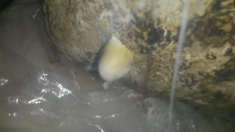 Das ist die größte Primordie. Man erkennt sehr schön die Gelbfärbung und dieser Fruchtkörper scheint riesig zu werden :D.