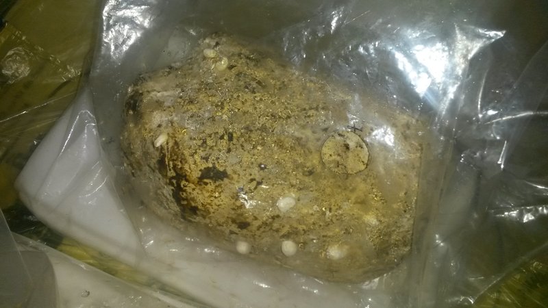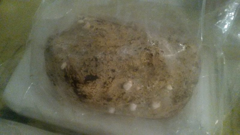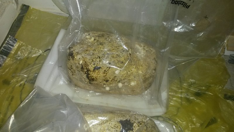 Der Substratblock, der noch nicht anfängt zu fruchten. Aber schon die nötige Färbung hat. Dauert nicht mehr lange und man sieht bald schon die ersten Primordien.