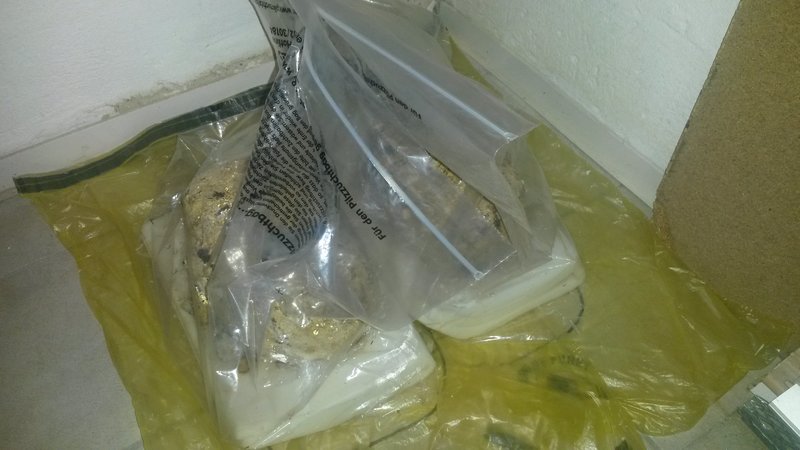 Beide Substratblöcke zusammen. Stehen feucht und warm im Heizungskeller. Für die nötige Feuchte sorgt die Schaumstoffmatte
