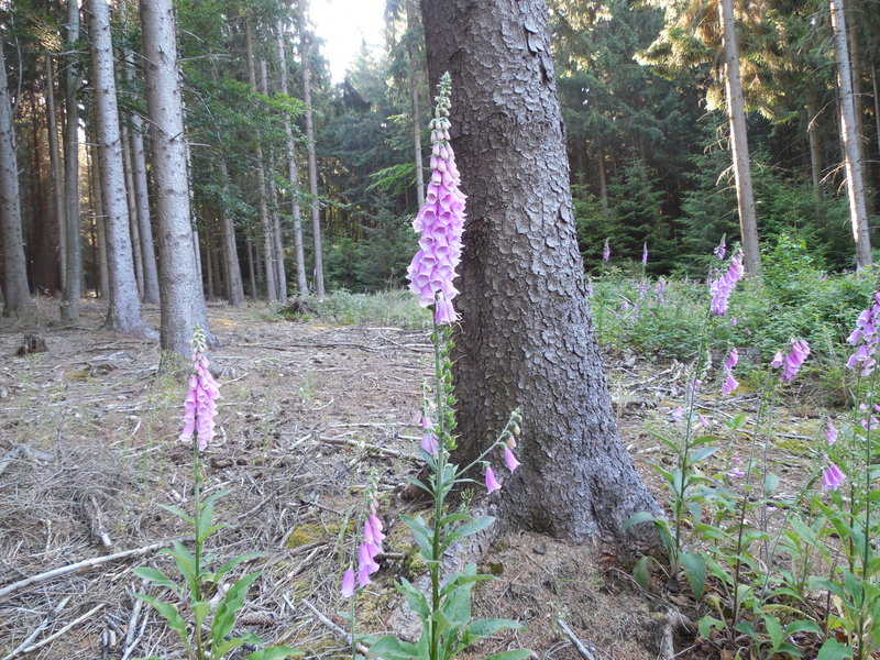 Bild Nr. 1: Diese wunderschöne Pflanze habe ich jede Menge davon, im Fichtenwald gefunden. Ich bin mir sehr sicher, das es sich hierbei um den Fingerhut handelt.