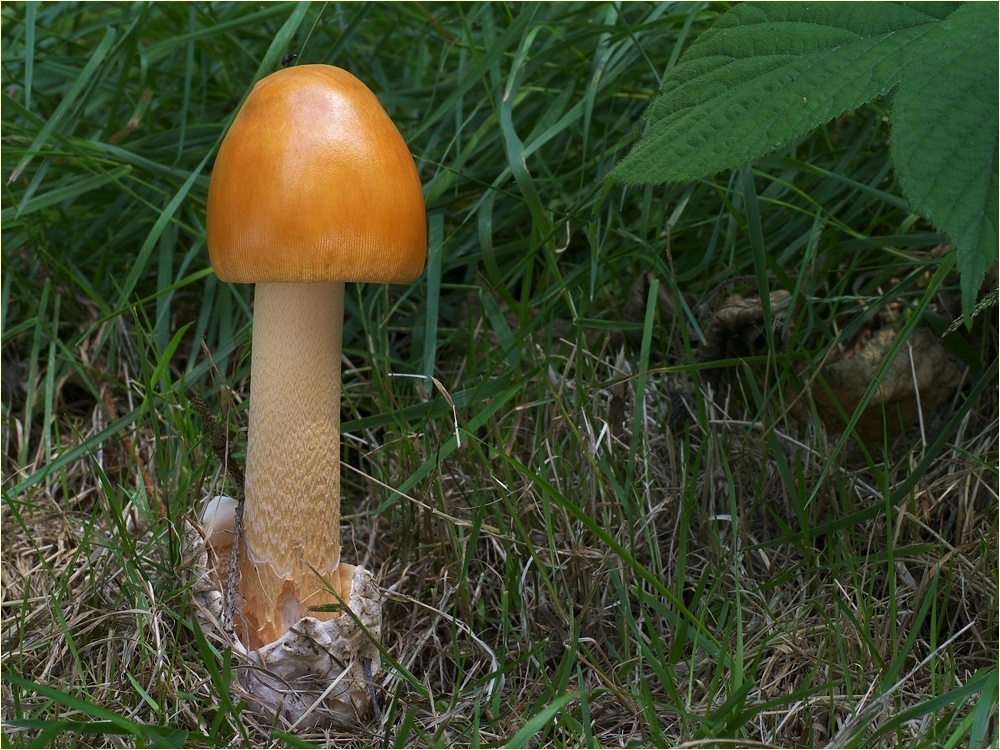 Deutsche Namen hat dieser Speisepilz viele: Orangegelber Scheidenstreifling, Orangebrauner Scheidenstreifling oder Safran-Scheidenstreifling. Mir gefällt Safrangelber Scheidenstreifling am besten.