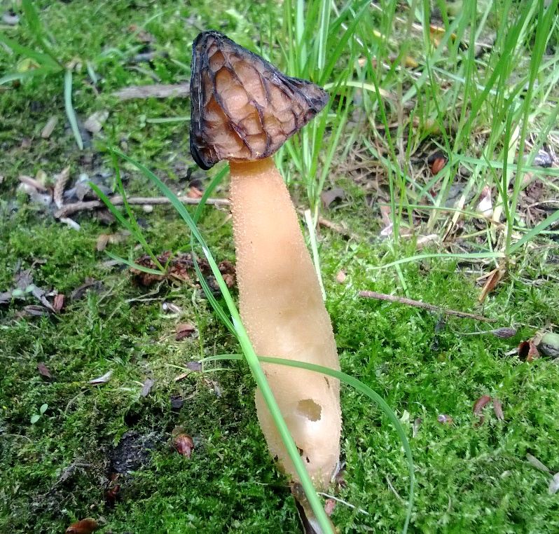 ... wobei Pablo auf dieses Exemplar stieß: die Halbfreie Morchel (Morchella semilibera) oder auch Käffchen-Morchel.