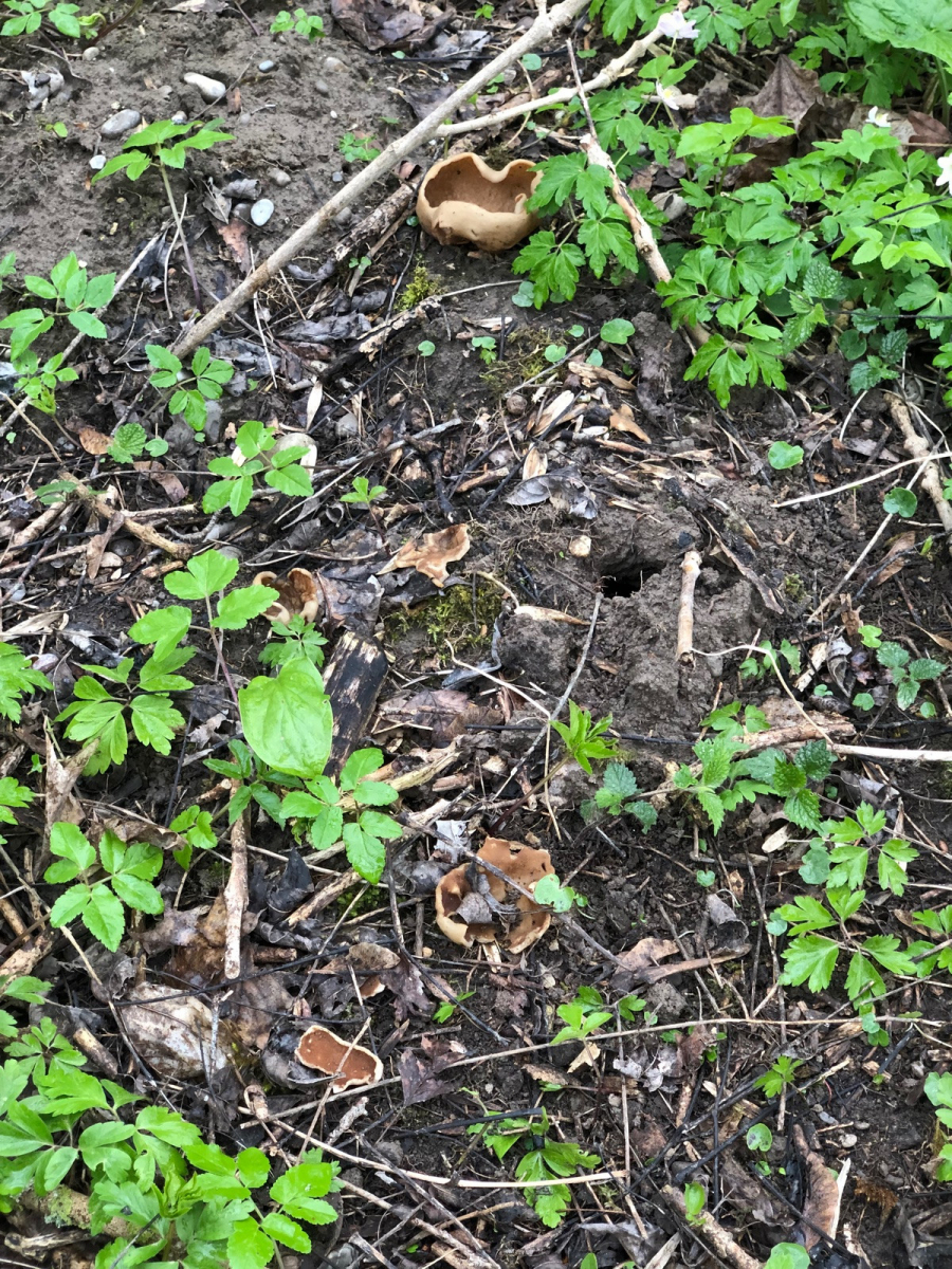 Bei der roten Pestwurz lassen sich auch Spitzmorcheln finden. Wir haben da schon die eine oder andere Stelle. Leider nicht immer. Was dabei wichtig ist, ist bisher ein Rätsel.