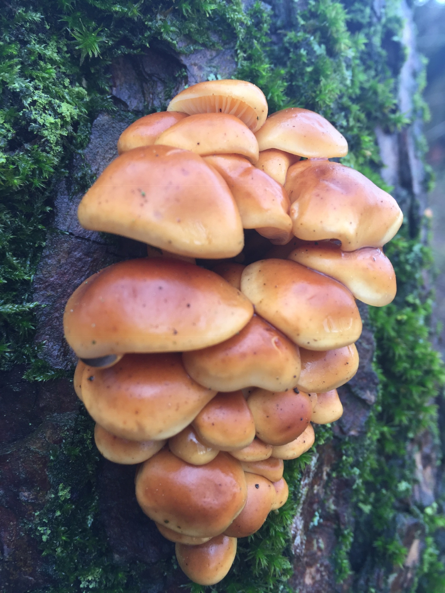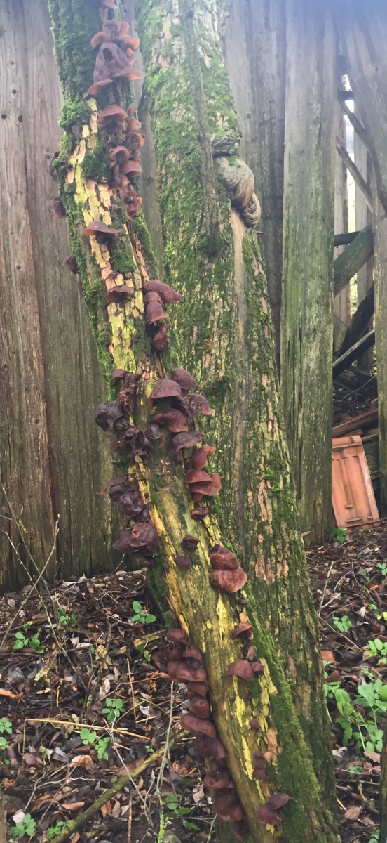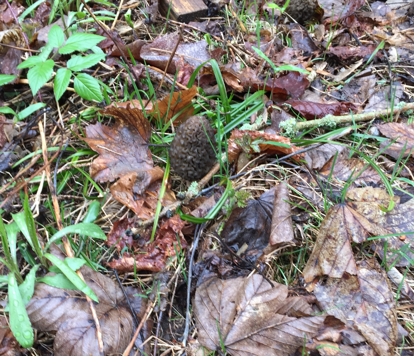 Wir sind dann ein bisschen rumgelaufen, bis die beiden weg waren. Hammer und Meißel in der Tasche. Meine Freundin ist Schmiere gestanden und ich habe den Chaga runter geklopft. Konnte nur eine Stelle abernten. Die andere war zu hoch.
