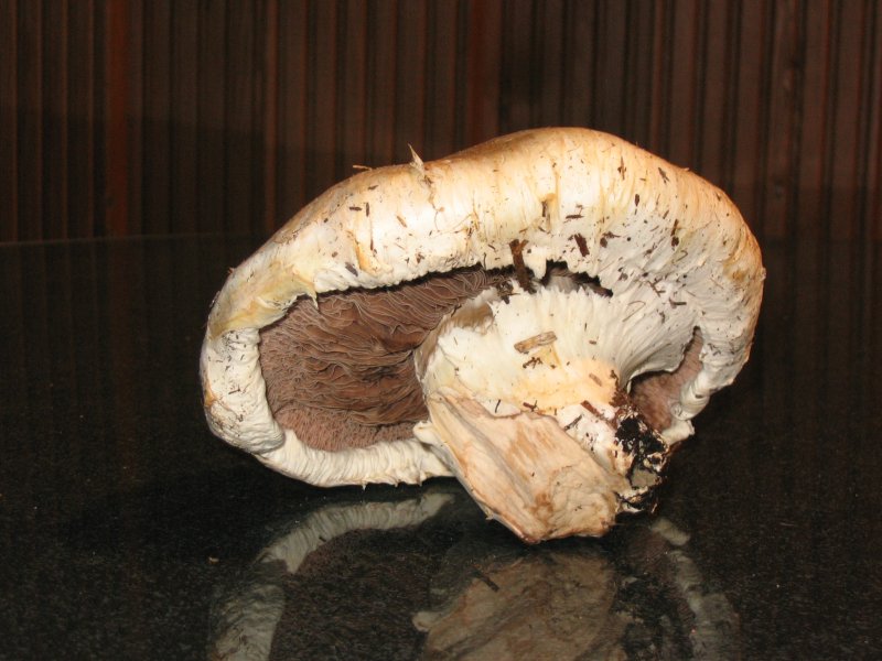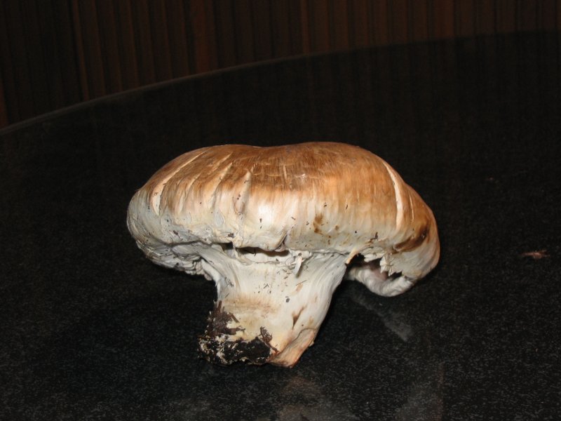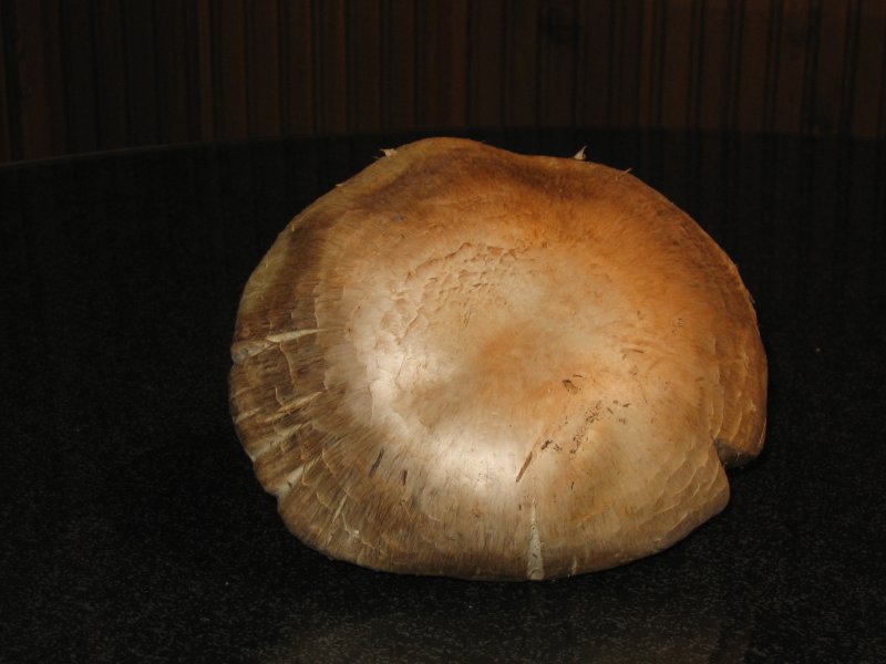 Deshalbe stelle ich mal ein paar Bilder von einem Pilz ein. Die Färbung der Oberseite ist auf den Foto ´s wesentlich dunkler als in Natur. In Natur ist es ein Beige bis helles Braun. Die Unterseite sieht relativ realistisch aus. Es ist ein Braun wie bei einer Vollmilchschokolade. An manchen Stellen etwas heller, als ob die Schokolade schon mal zu warm geworden wäre.